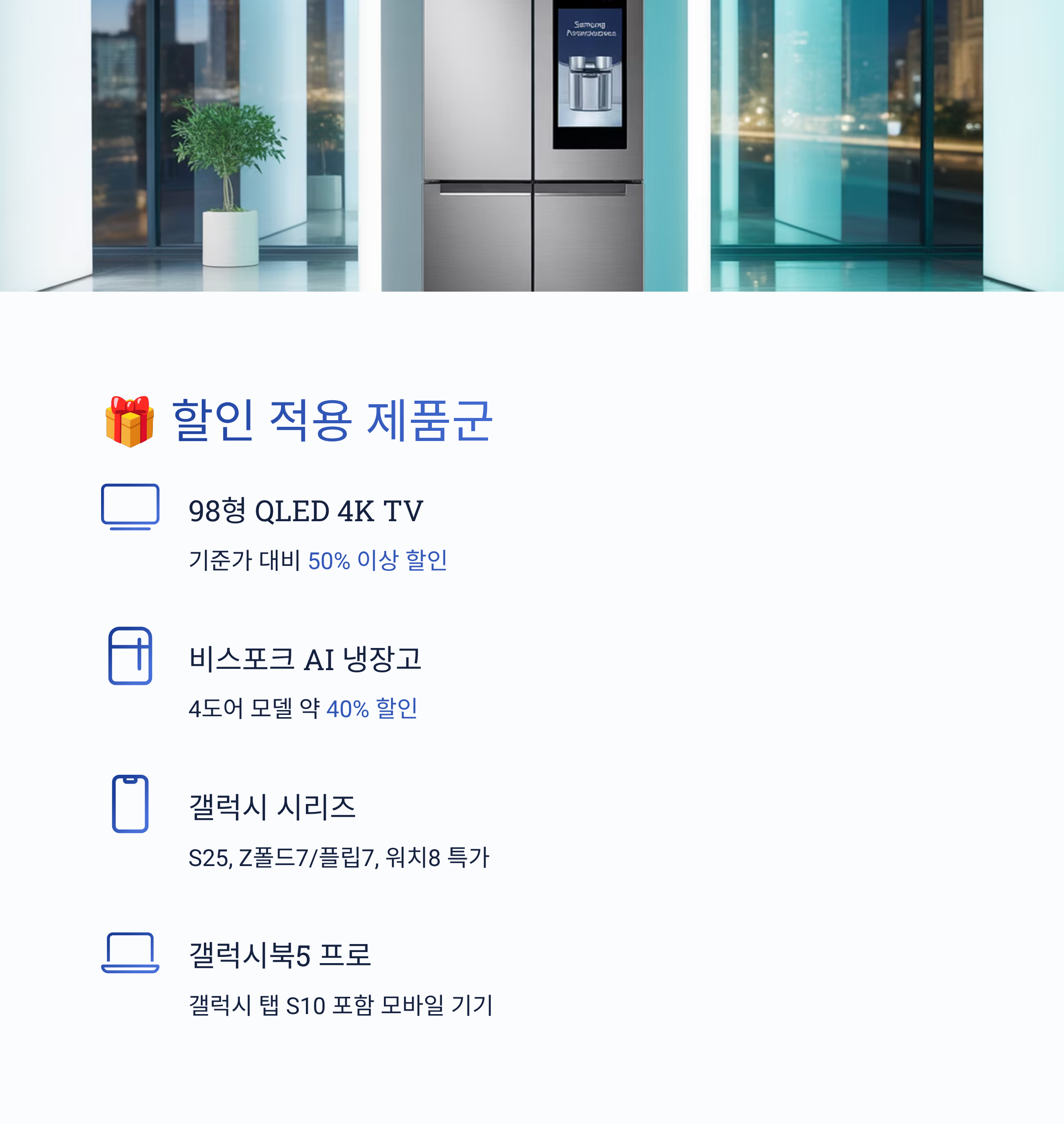 - 98형 QLED 4K TV → 기준가 대비 50% 이상 할인