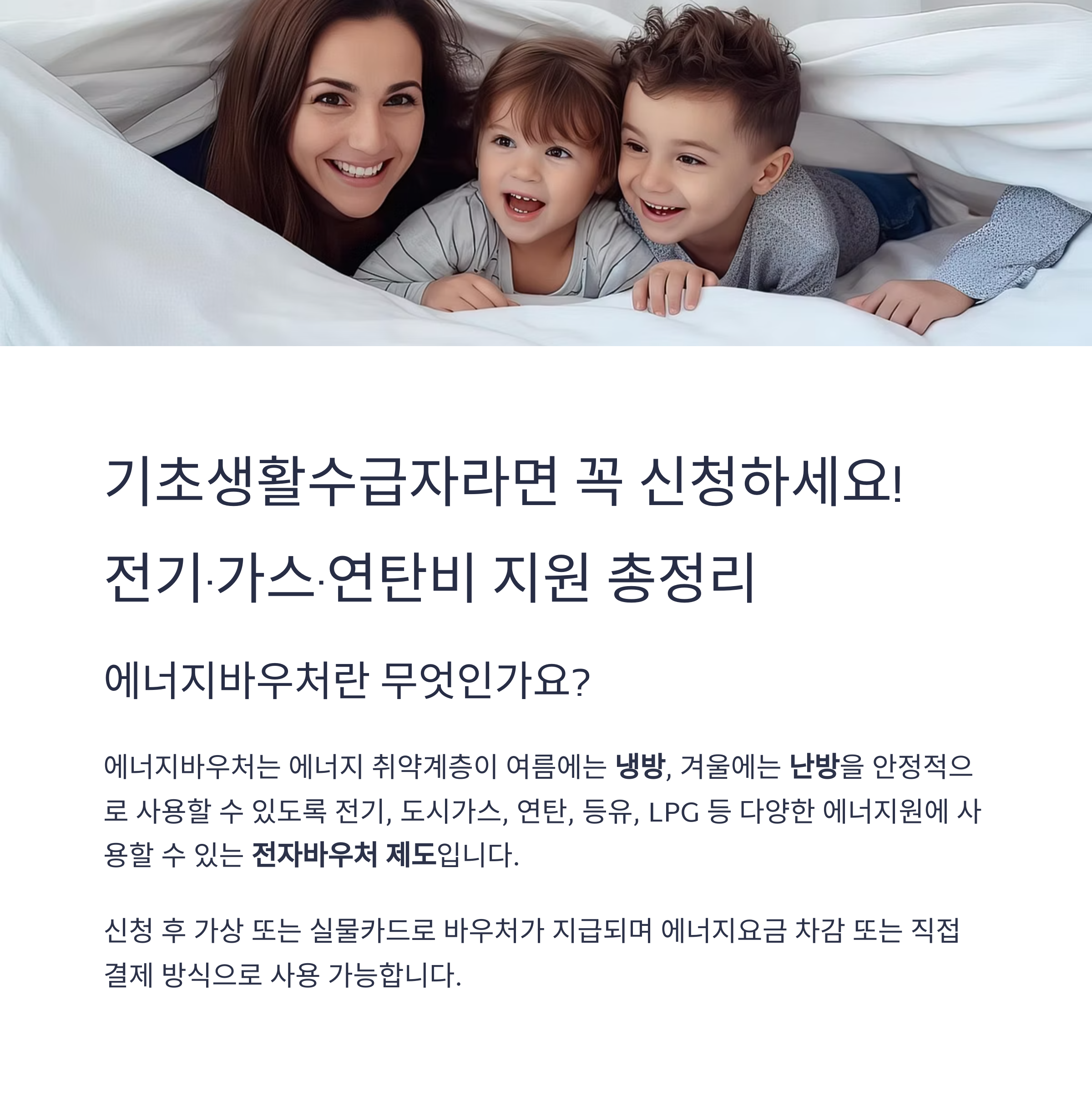 기초생활수급자라면 꼭 신청하세요! 전기·가스·연탄비 지원 총정리