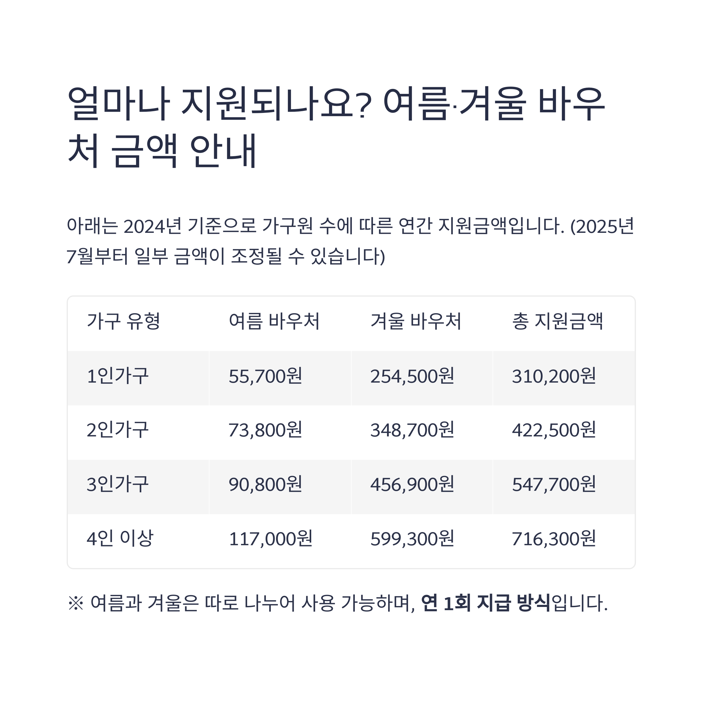얼마나 지원되나요? 여름·겨울 바우처 금액 안내