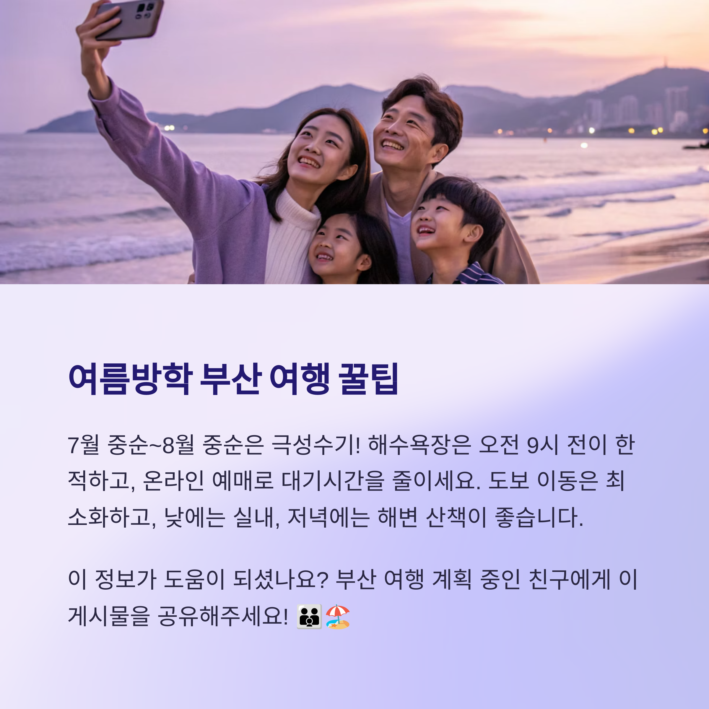 2025년 여름방학을 맞아 가족과 함께 부산으로의 여행을 계획 중이시라면,