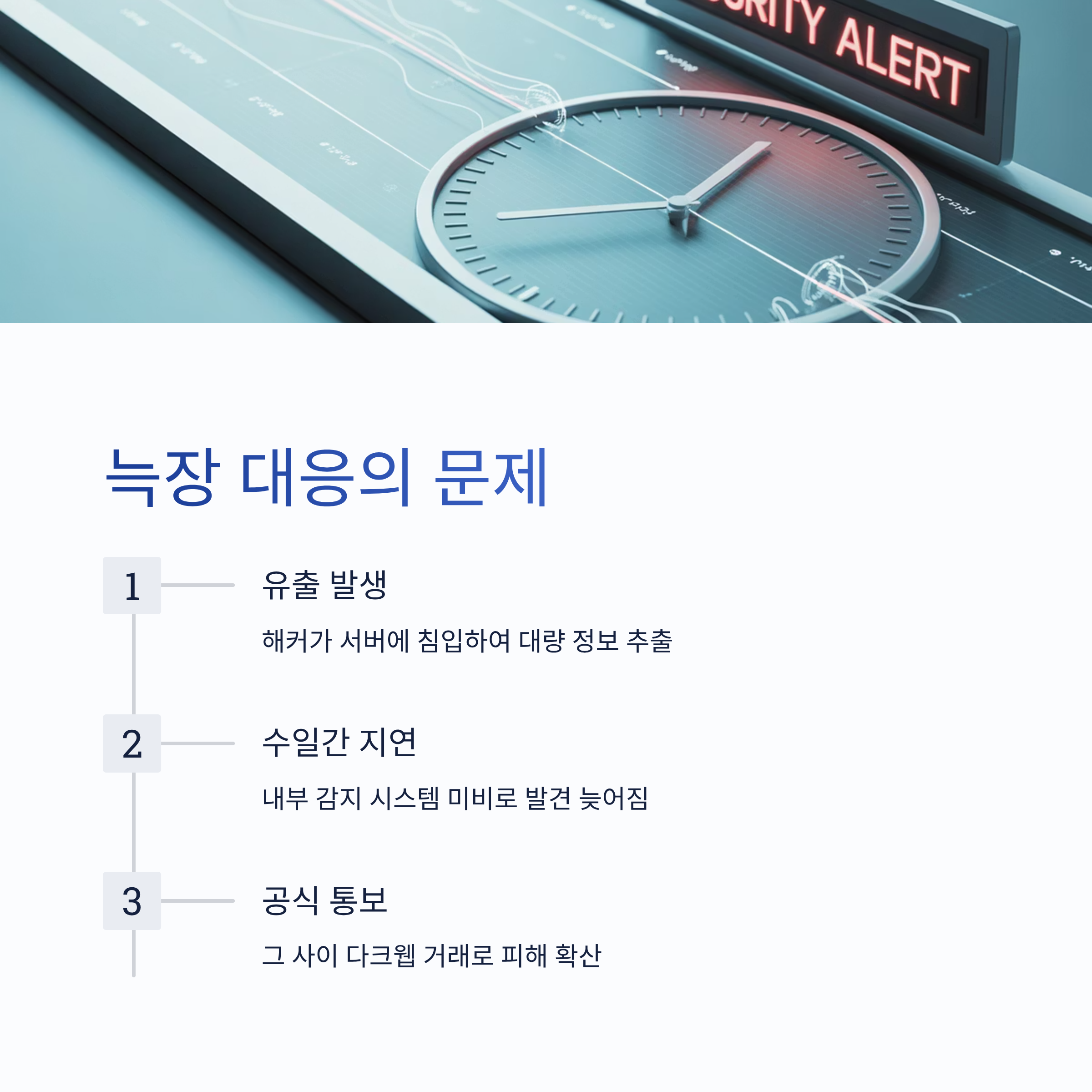 이러한 대응 지연은 내부 침입 감지 시스템의 미비, 비상 대응 프로토콜 부재, 사이버 위기 커뮤니케이션 훈련 부족에서 기인합니다.
