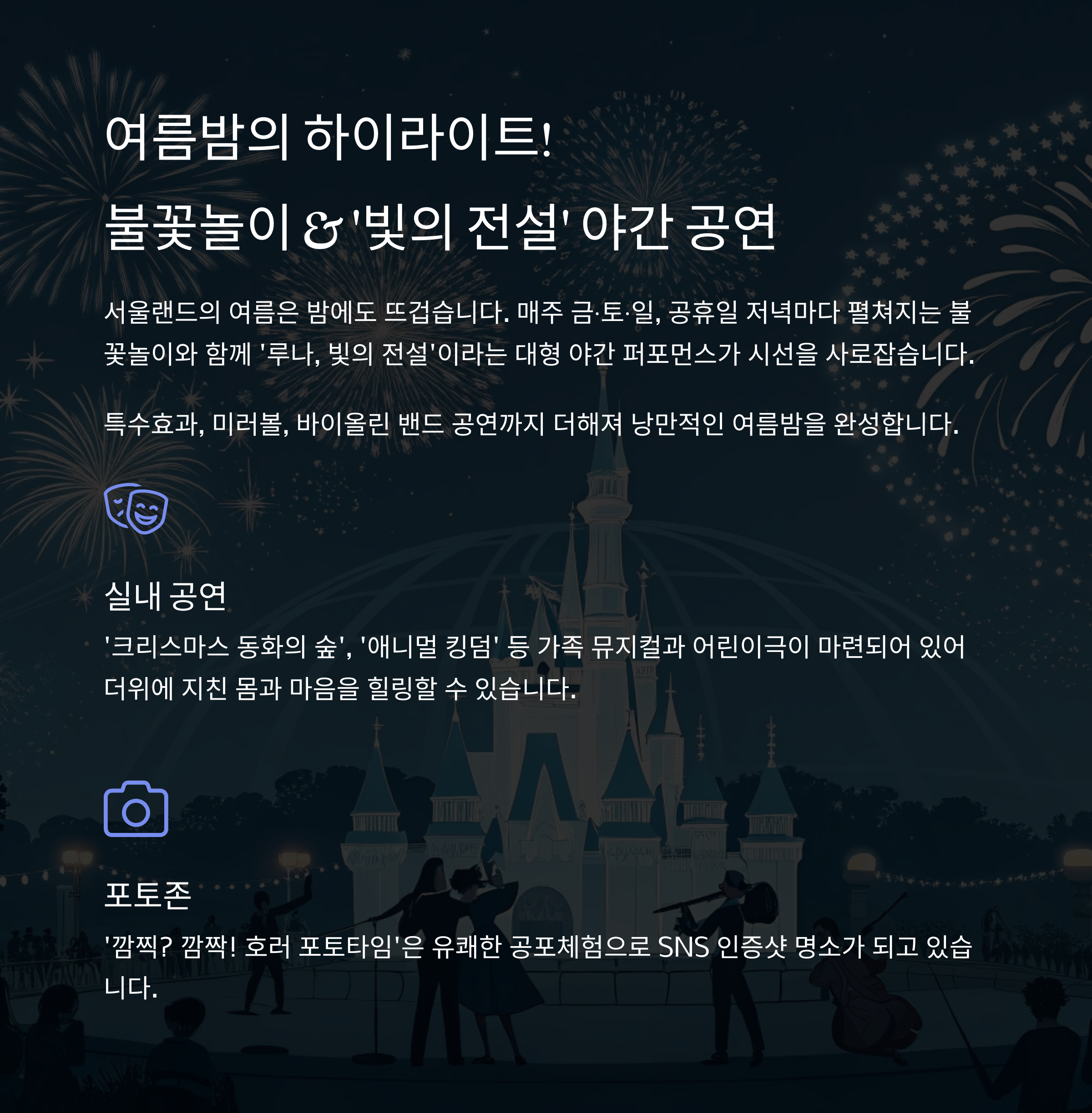 야간 불꽃놀이까지 모든 연령대가 만족할 수 있는