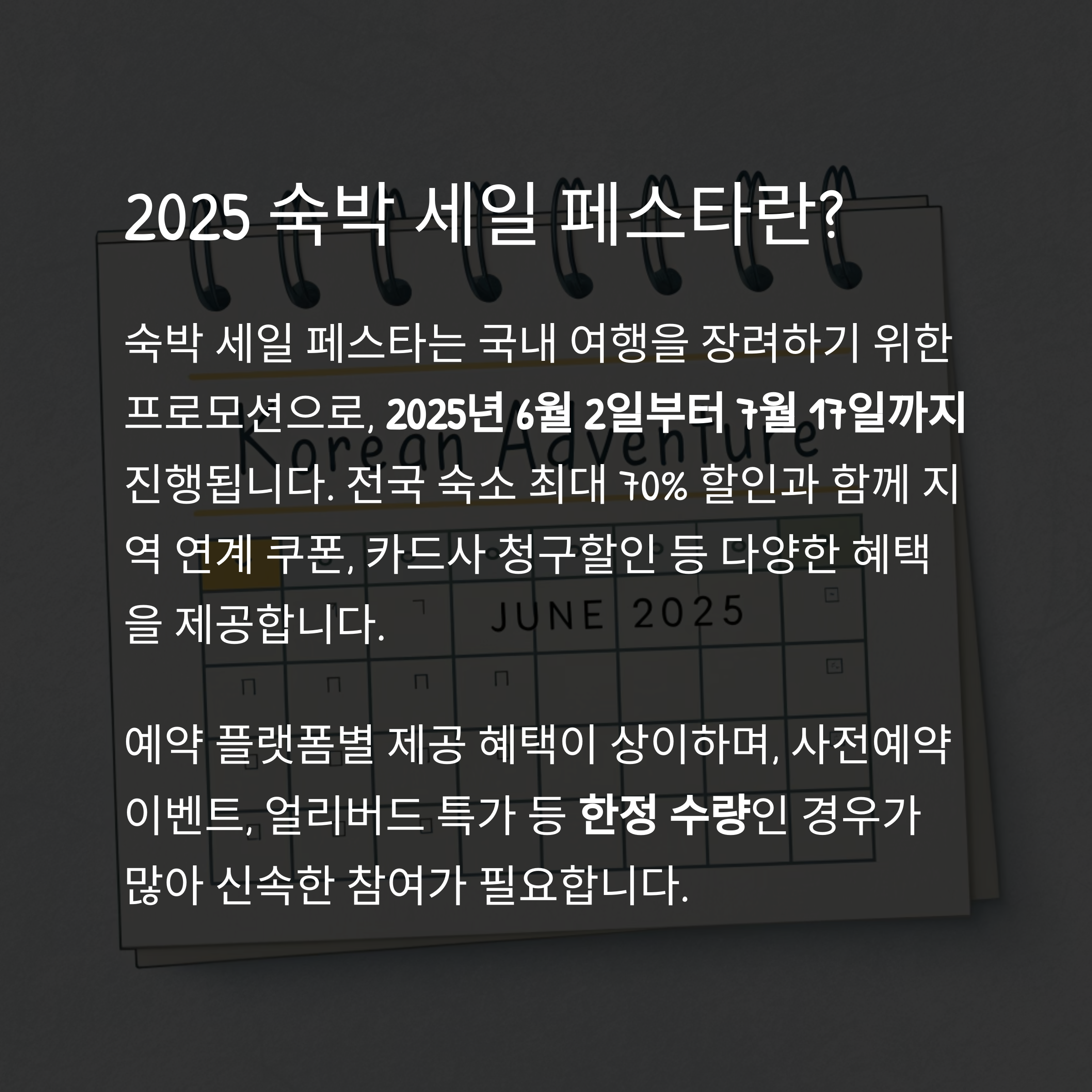 숙박 세일 페스타는 2025년 6월 2일부터 7월 17일까지 진행되며,