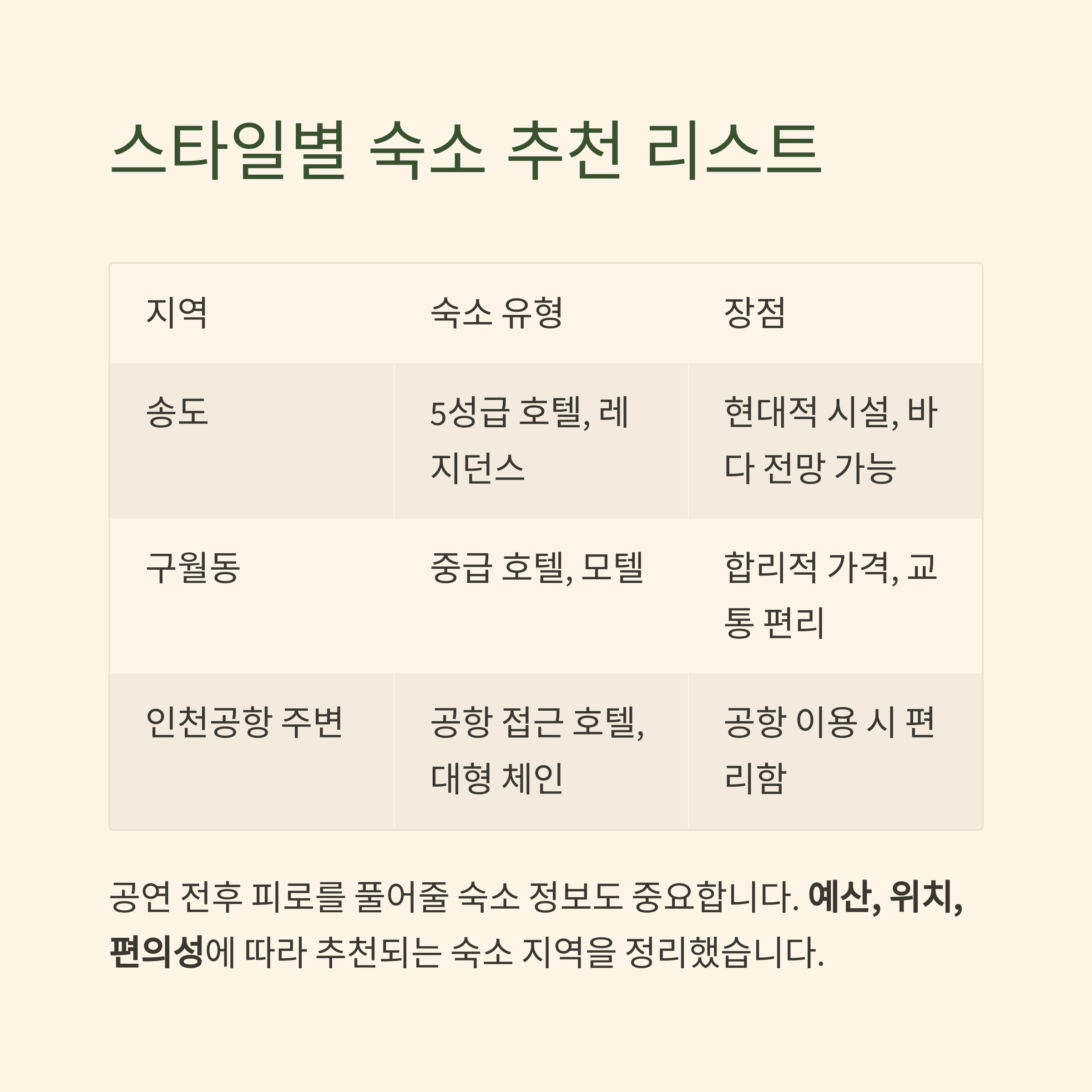 공연 전후 피로를 풀어줄 숙소 정보도 중요합니다.