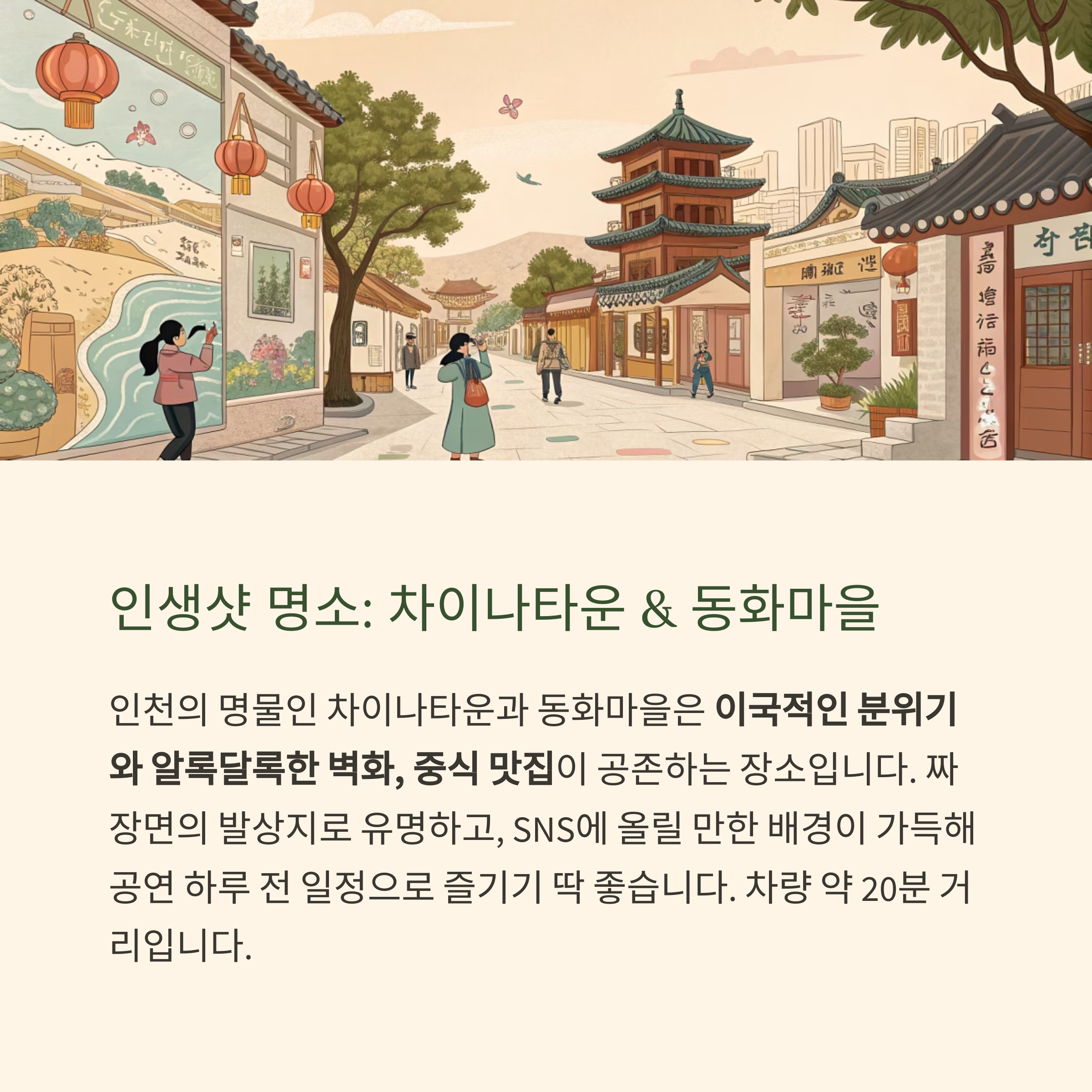 단순한 공연 관람을 넘어, 인천 여행까지 함께 즐길 수 있는 꿀팁을 안내드립니다.