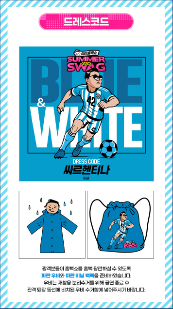 | 우비/수영복 | 비에 젖듯 흠뻑 젖는 공연이므로 미리 준비하면 쾌적합니다. |