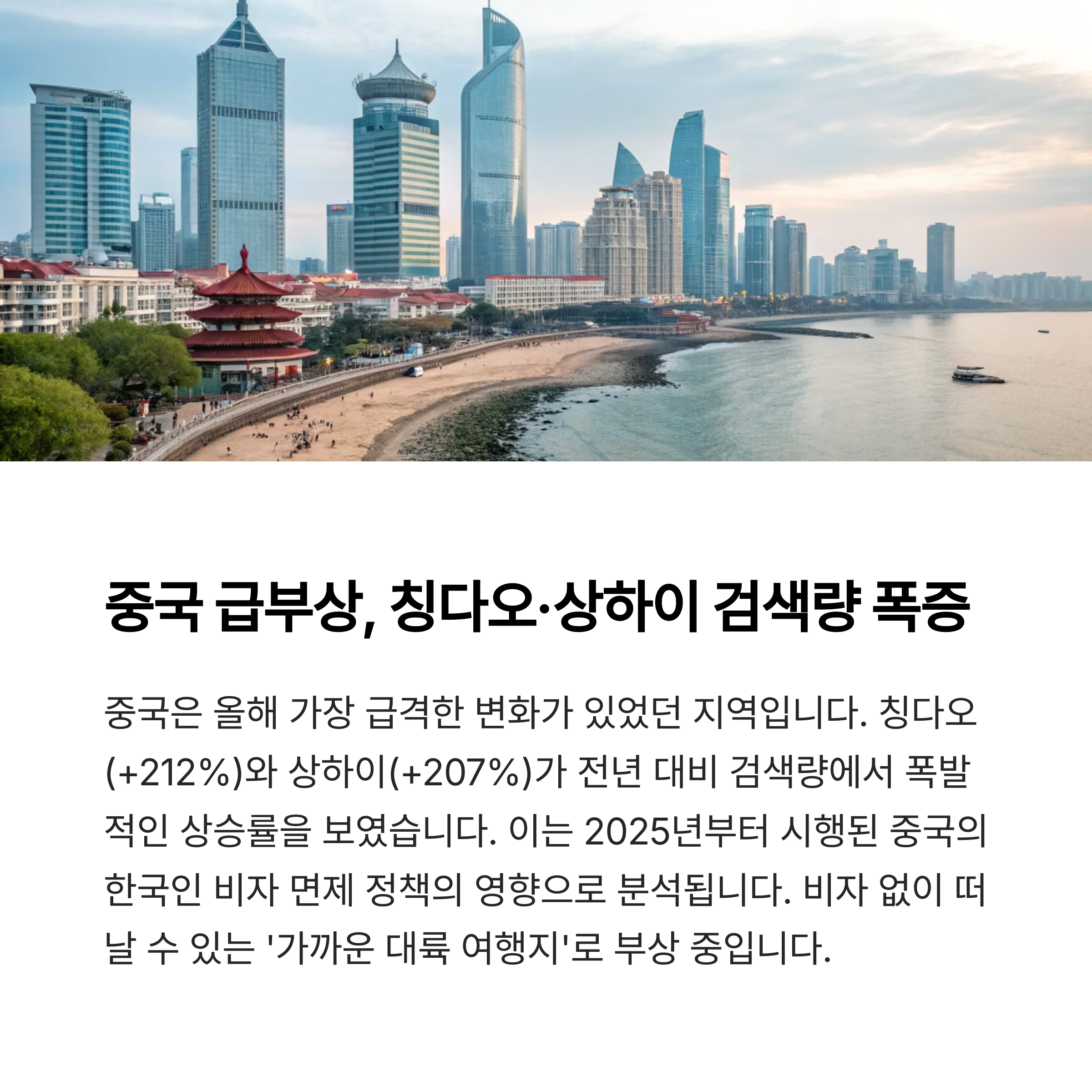 칭다오(+212%)와 상하이(+207%)가 전년 대비 검색량에서