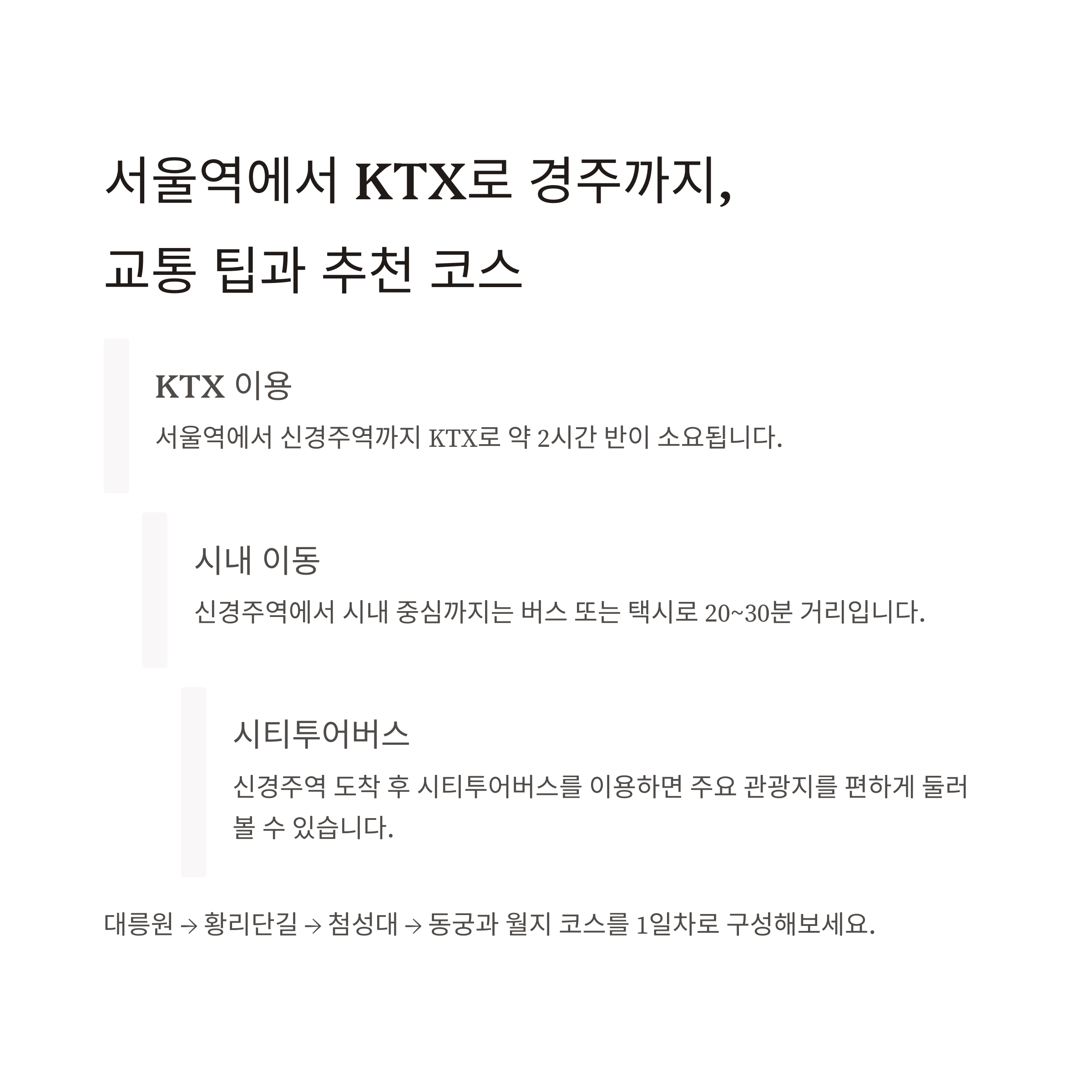 서울역에서 KTX로 경주까지, 교통 팁과 추천 코스