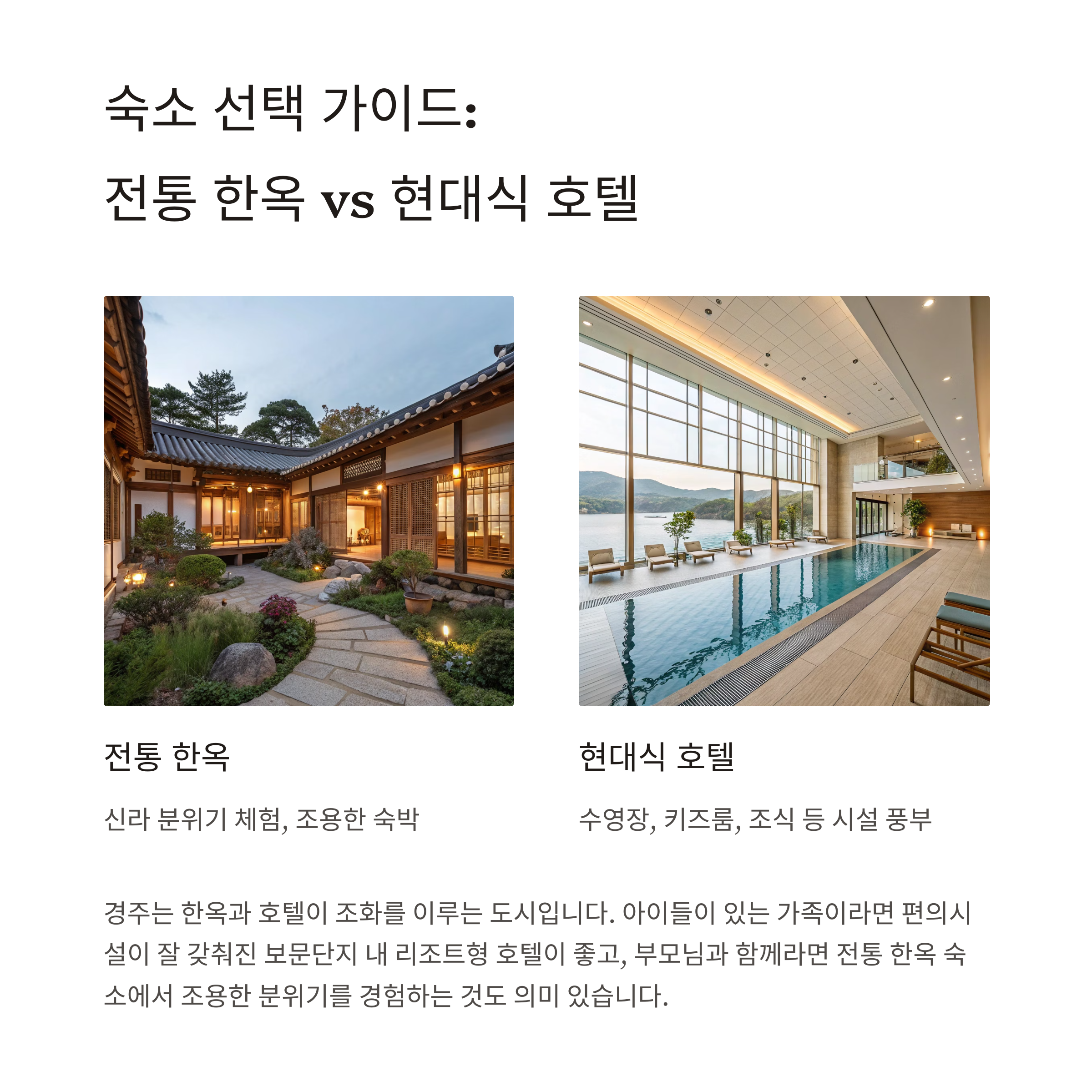 | 전통 한옥 | 신라 분위기 체험, 조용한 숙박 |