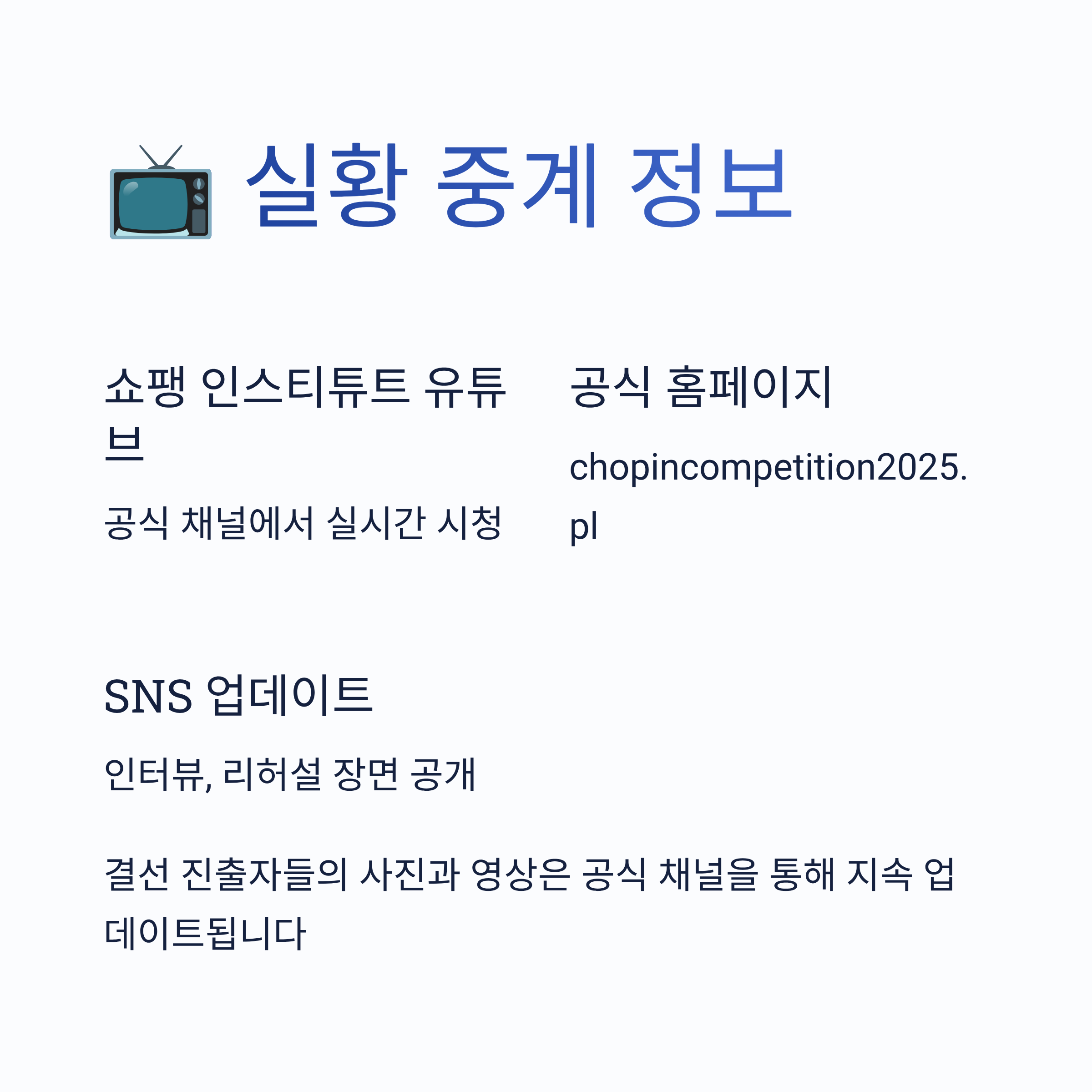 | 📍 중계 | 공식 유튜브 · 쇼팽 인스티튜트 홈페이지 · 포럼 생중계 |