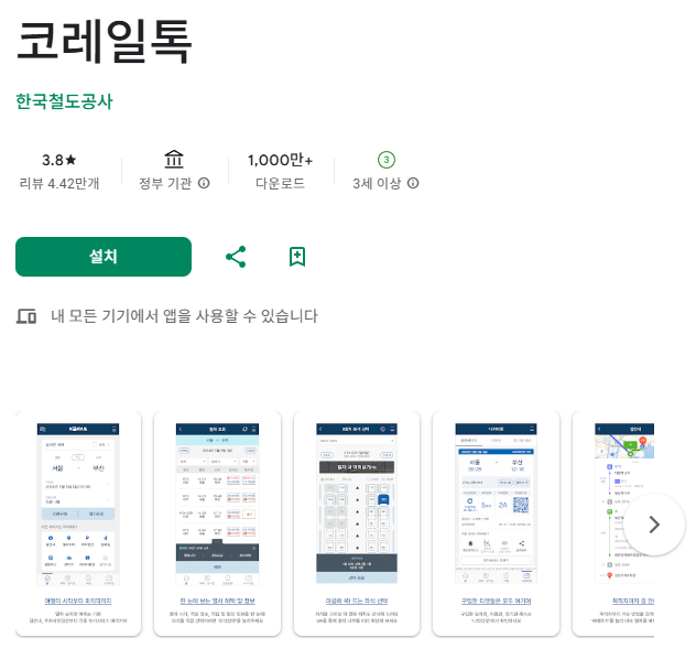 코레일톡은 코레일의 승차권 예약 앱입니다.
