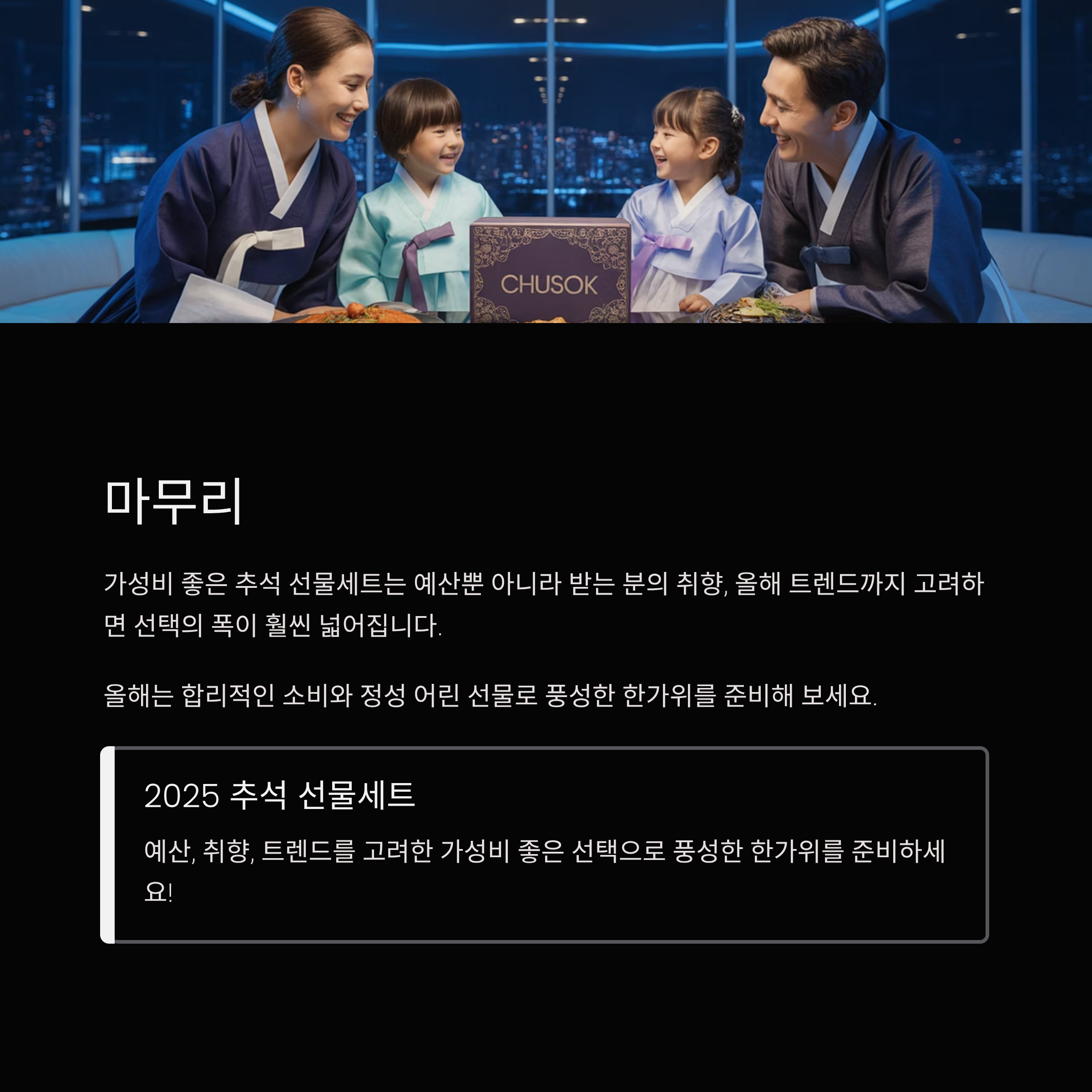 2025년 추석을 앞두고 합리적인 가격과 만족도를 동시에 잡을 수 있는 선물세트를