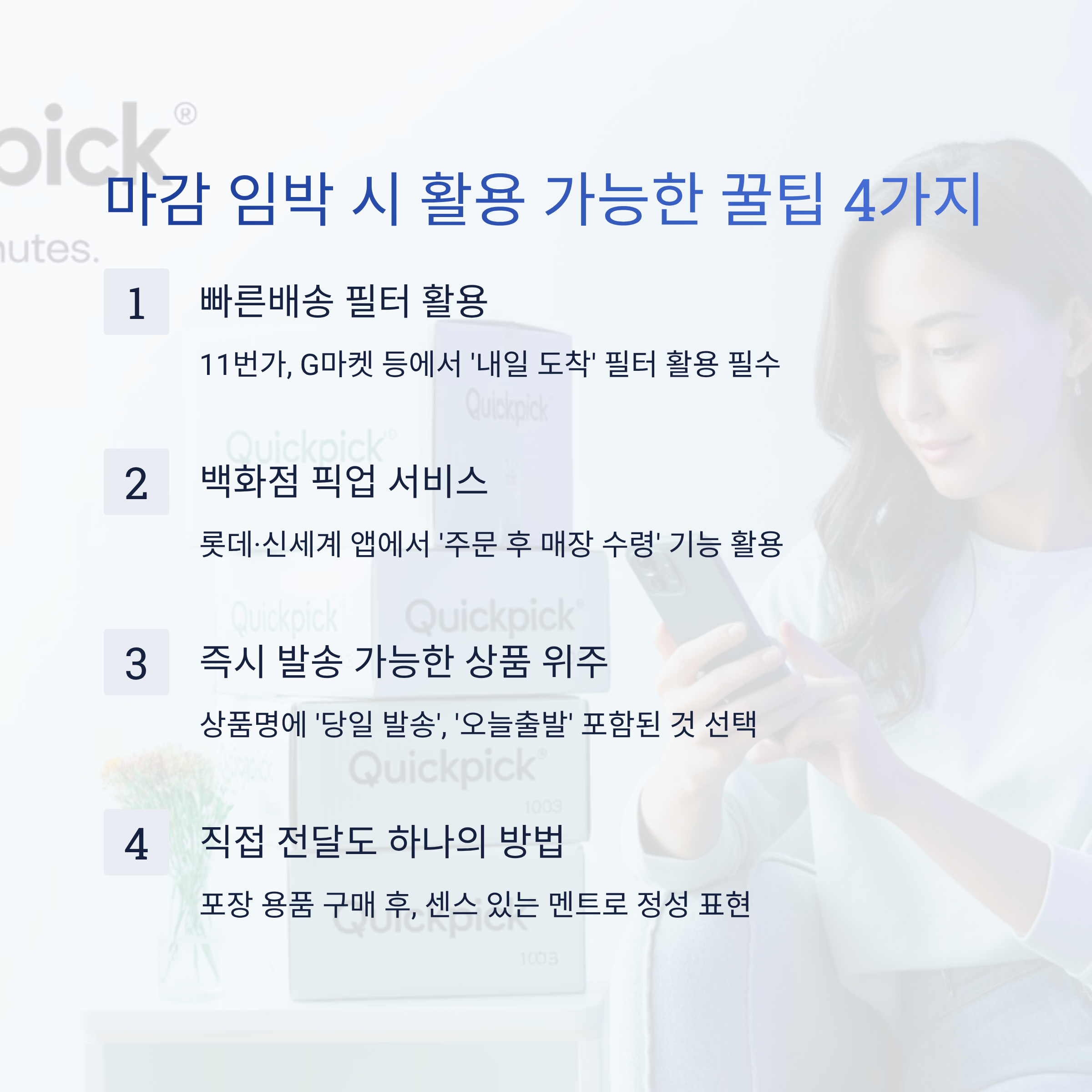 | ✅ 빠른배송 필터 활용 | 11번가, G마켓 등에서 ‘내일 도착’ 필터 활용 필수 |