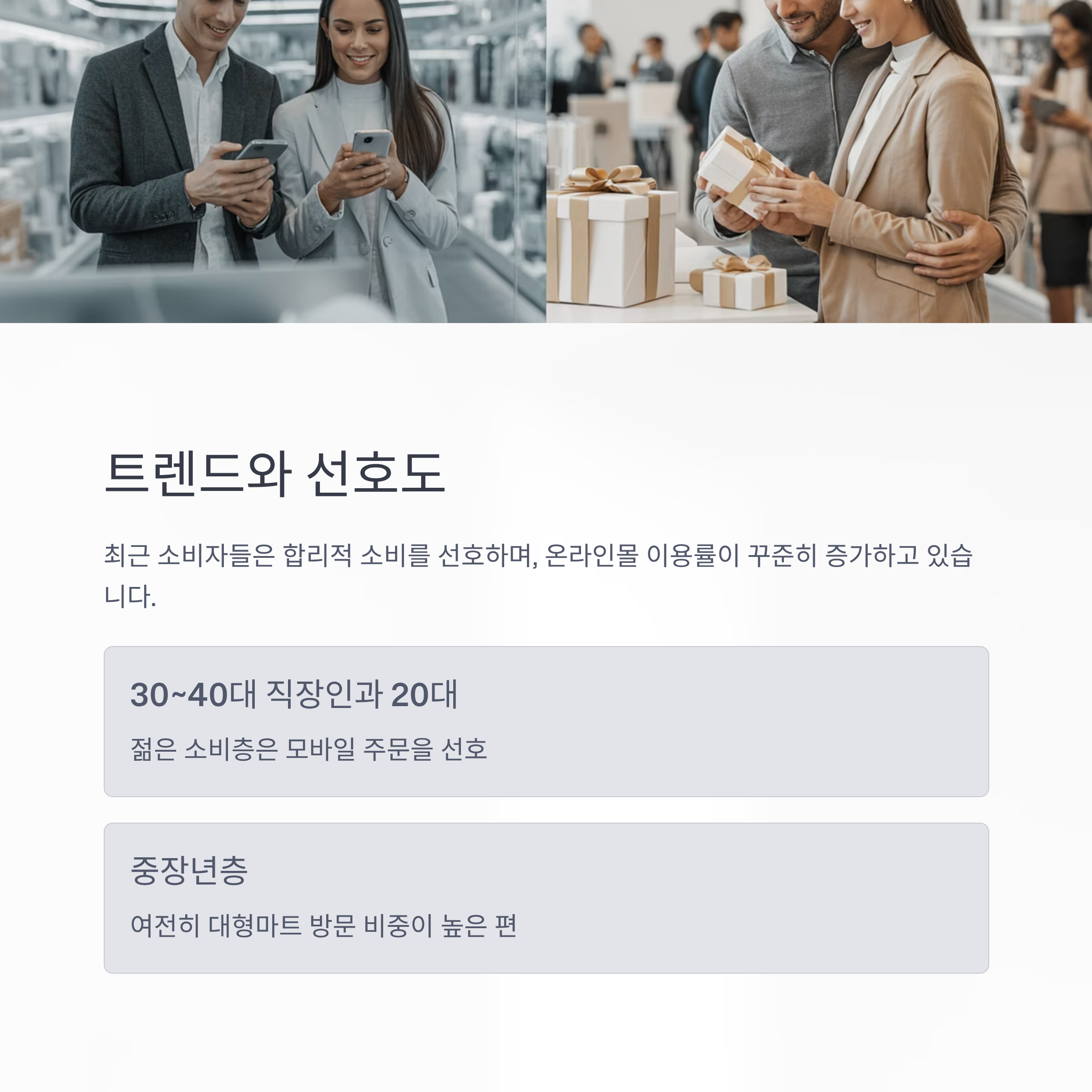 최근 소비자들은 합리적 소비를 선호하며, 온라인몰 이용률이 꾸준히 증가하고 있습니다.