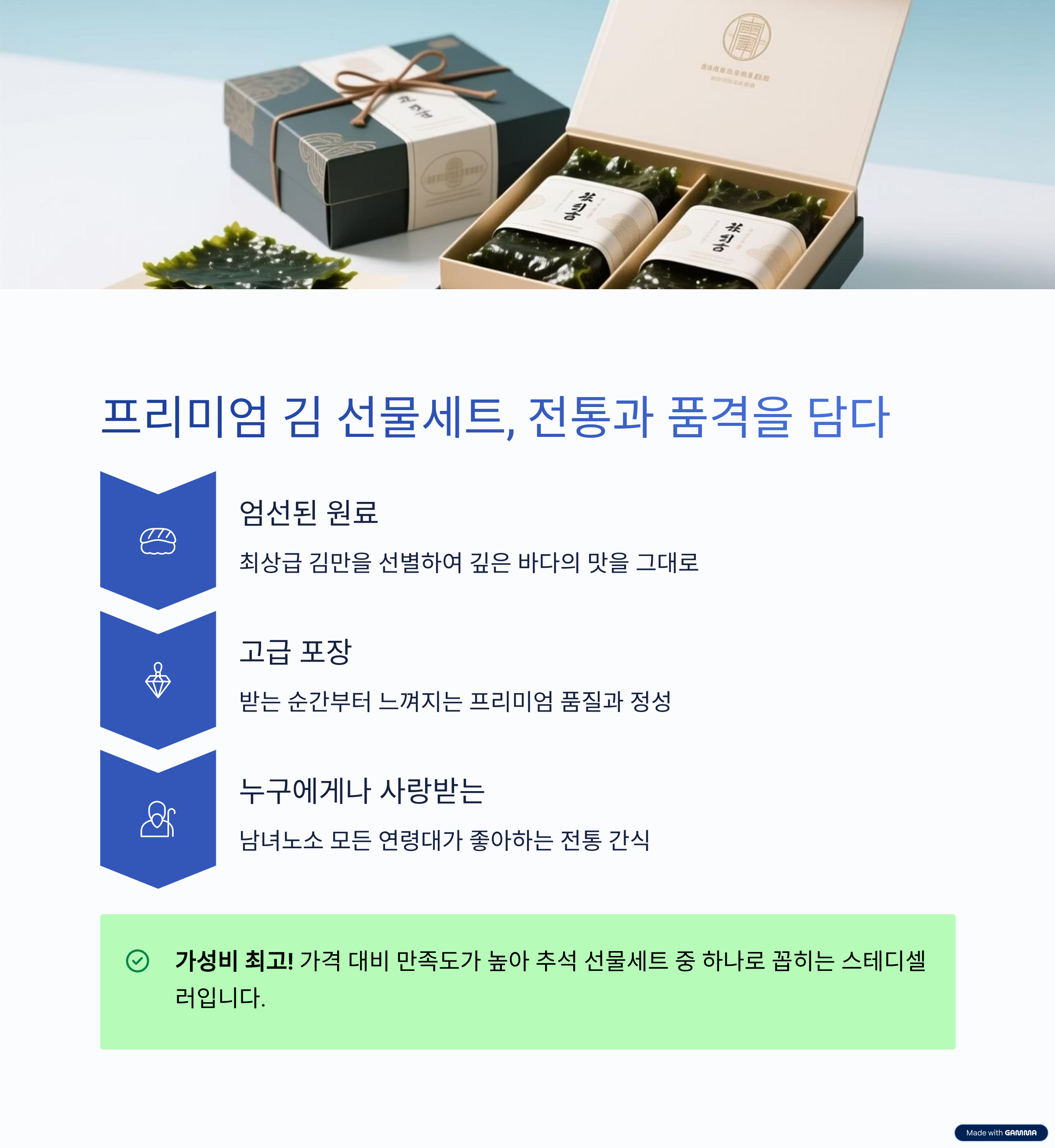 | 프리미엄 김 세트 | 고급 포장, 전통 간식 | 약 3만원 |