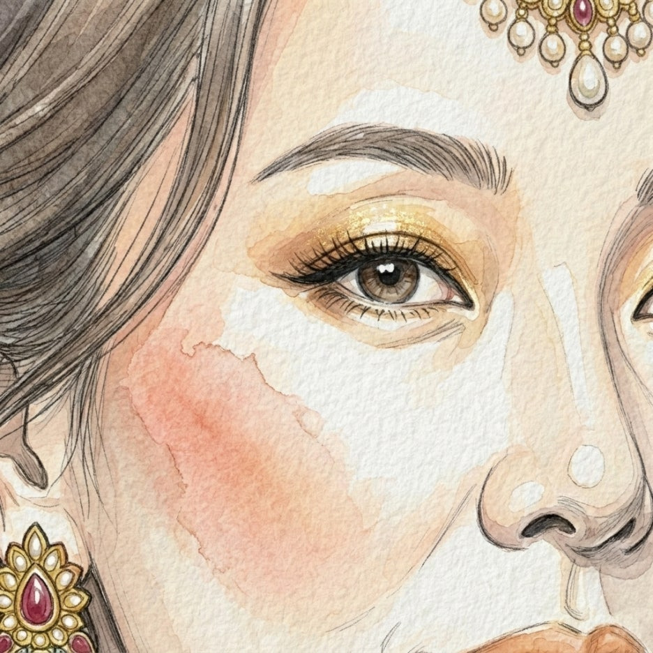 최근 화제가 된 인도 메이크업의 핵심은 바로 깊고 그윽한 눈매와 화려한 장신구의 조화예요.