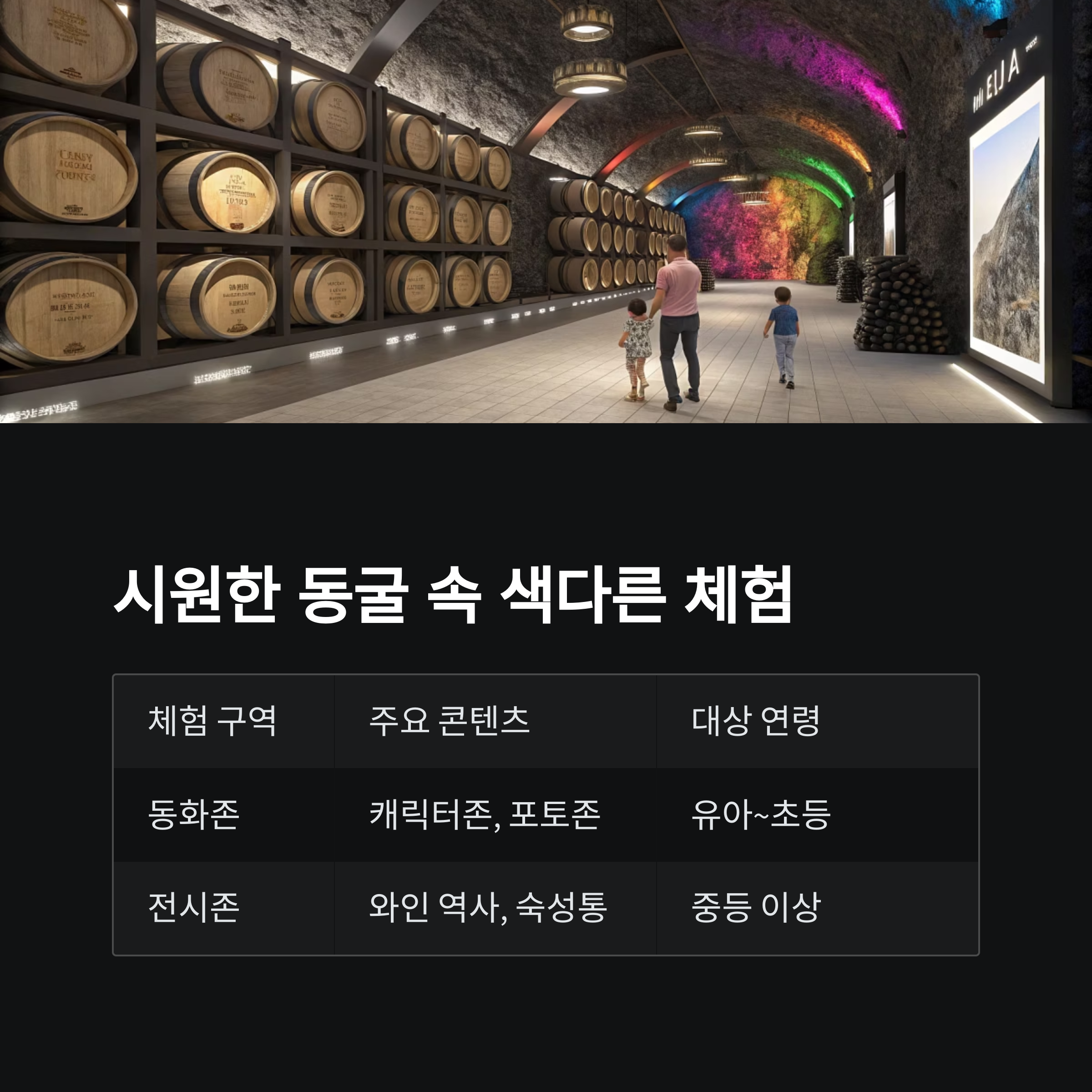 한여름에도 서늘한 온도를 유지하는 머루와인동굴은 색다른 체험형 여행지입니다.