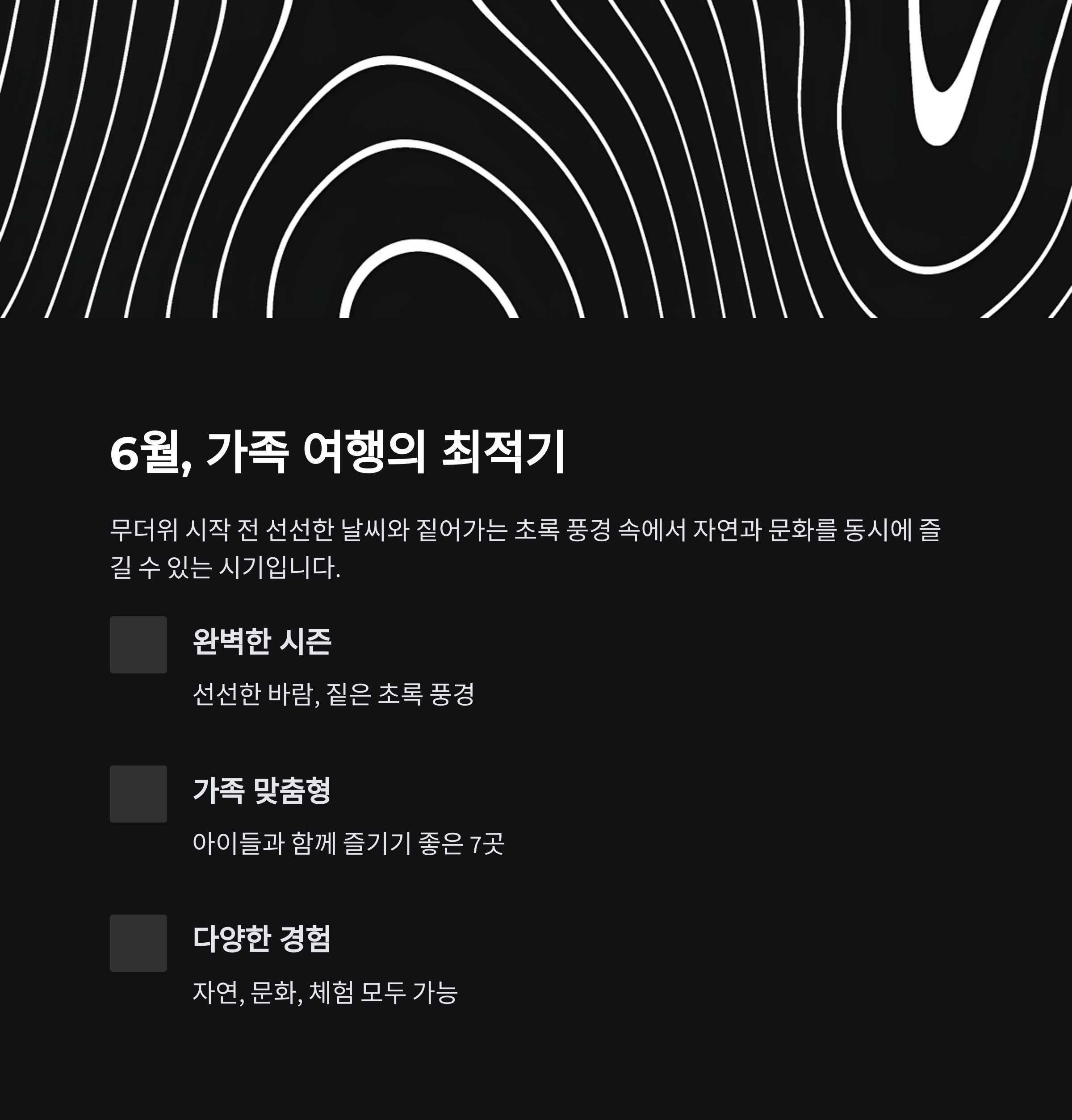 6월은 가족과 함께 여행을 떠나기에 가장 이상적인 계절입니다.