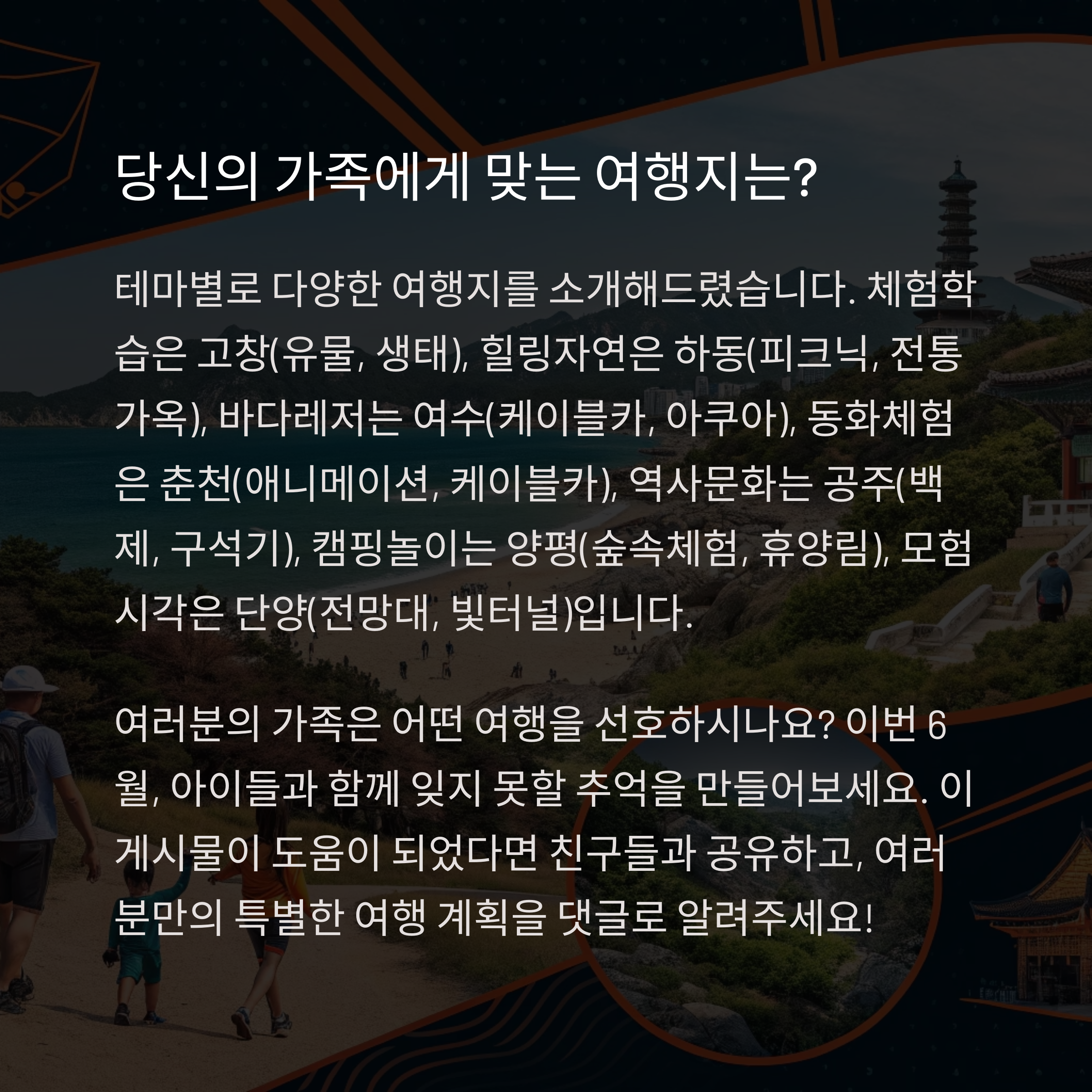 #가족여행코스 #6월여행지 #아이와국내여행 #자연체험 #여행추천지 #국내명소총정리