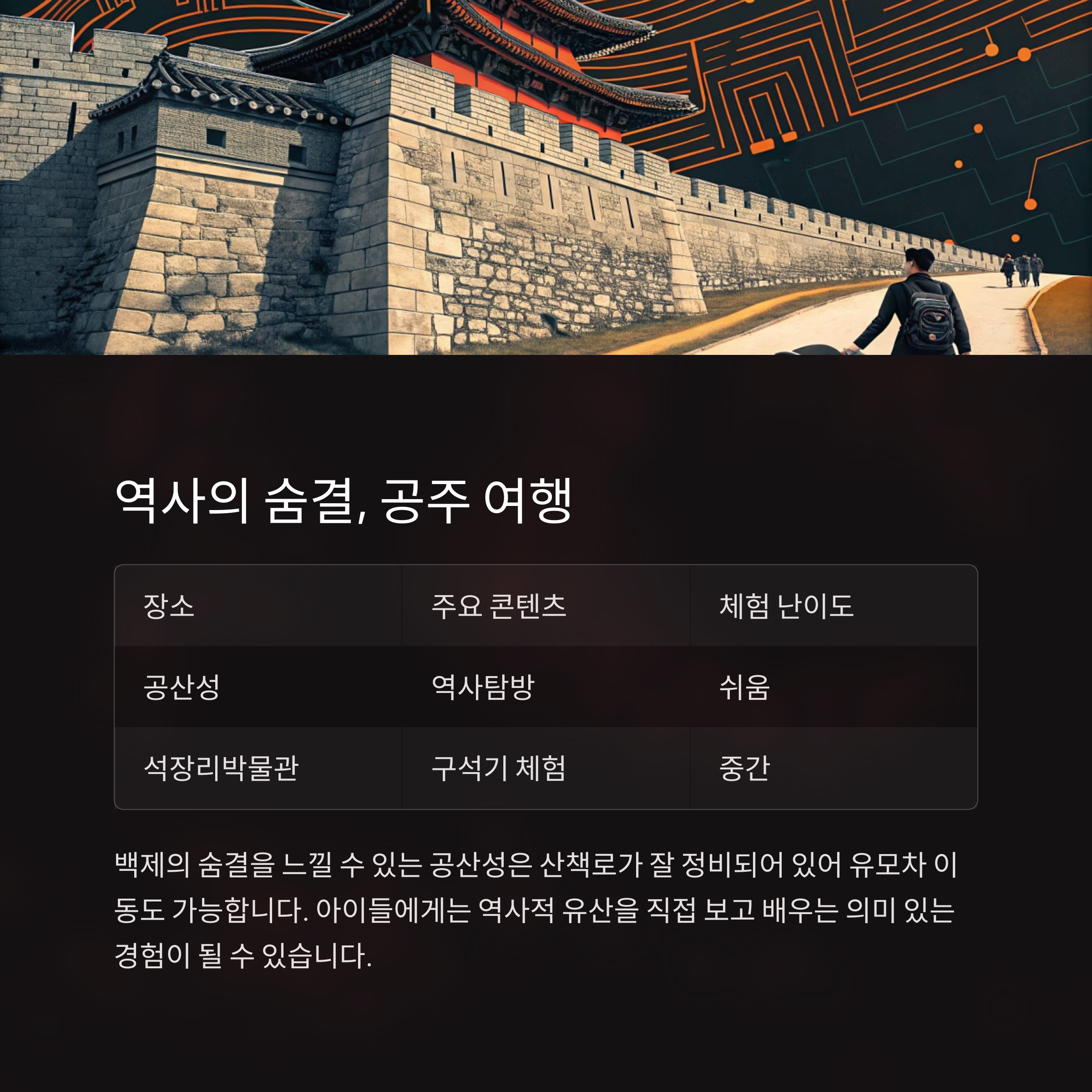 | 역사문화 | 공주 | 백제, 구석기 |