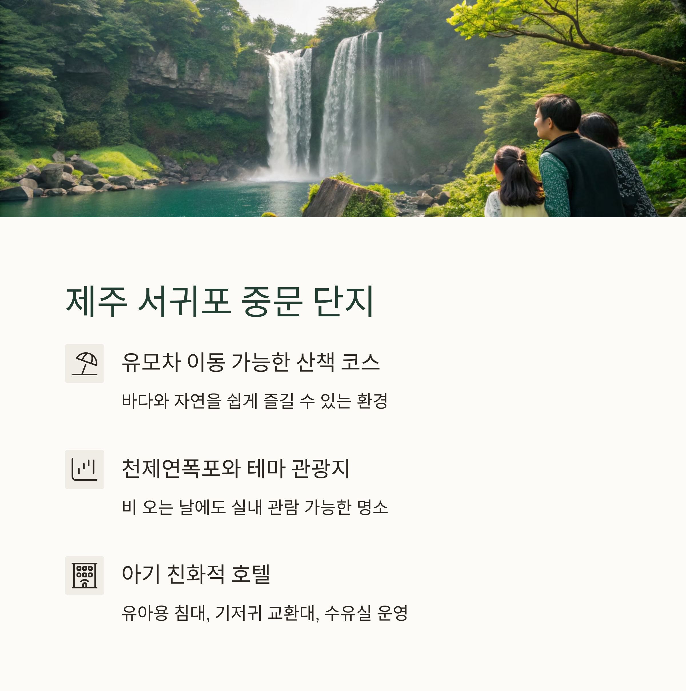 | 제주 중문 | 천제연폭포 & 테마관광지 | 산책과 실내 체험 모두 가능 | 우수 |