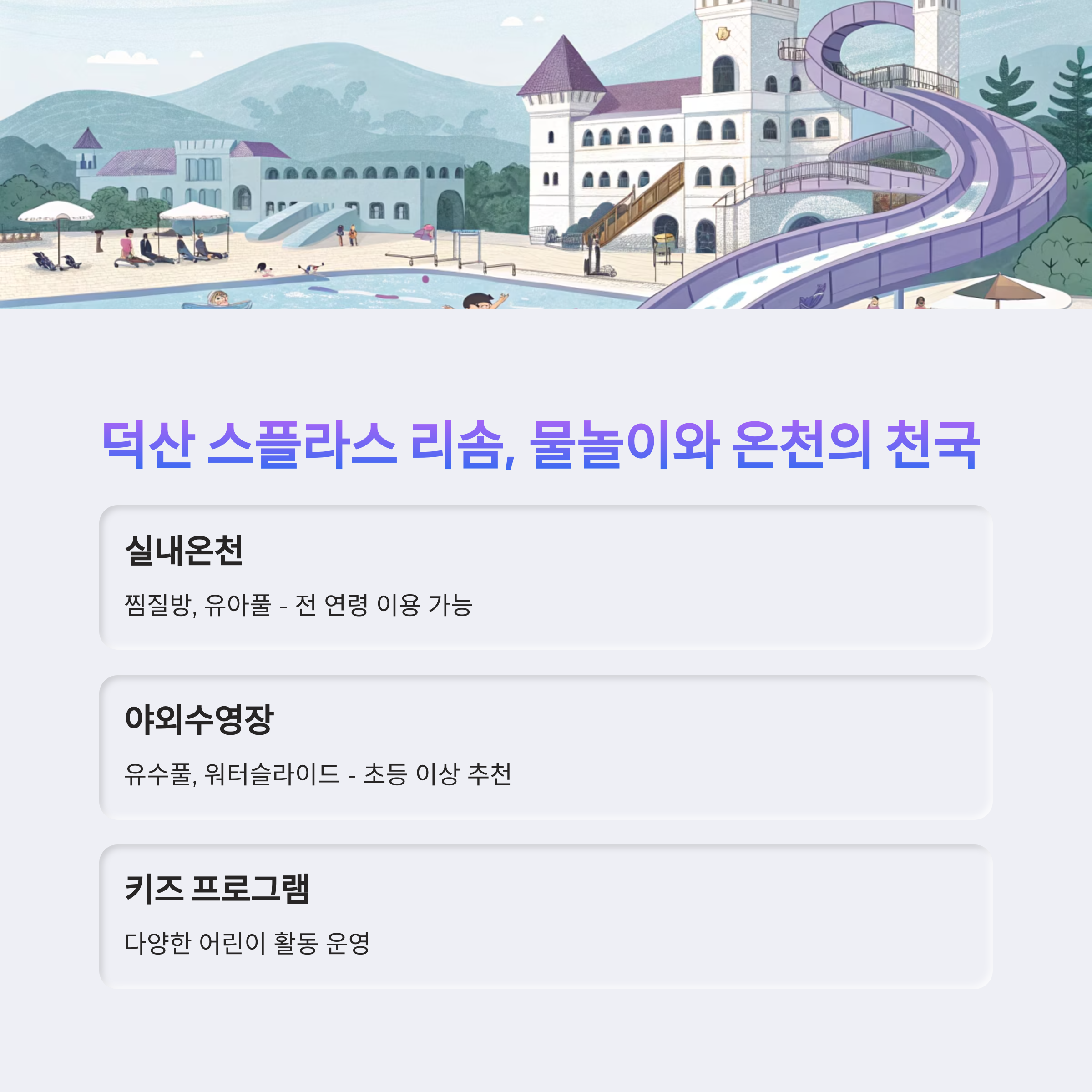 온천과 물놀이를 동시에 즐길 수 있는 가족 여행지입니다.