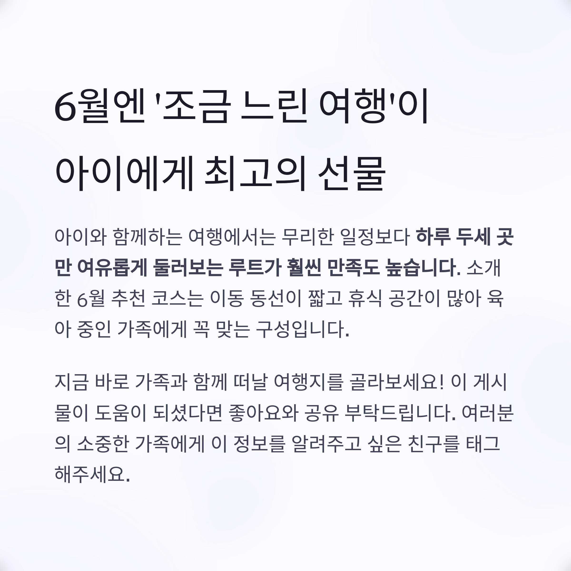 결론: 6월엔 ‘조금 느린 여행’이 아이에게 최고의 선물입니다