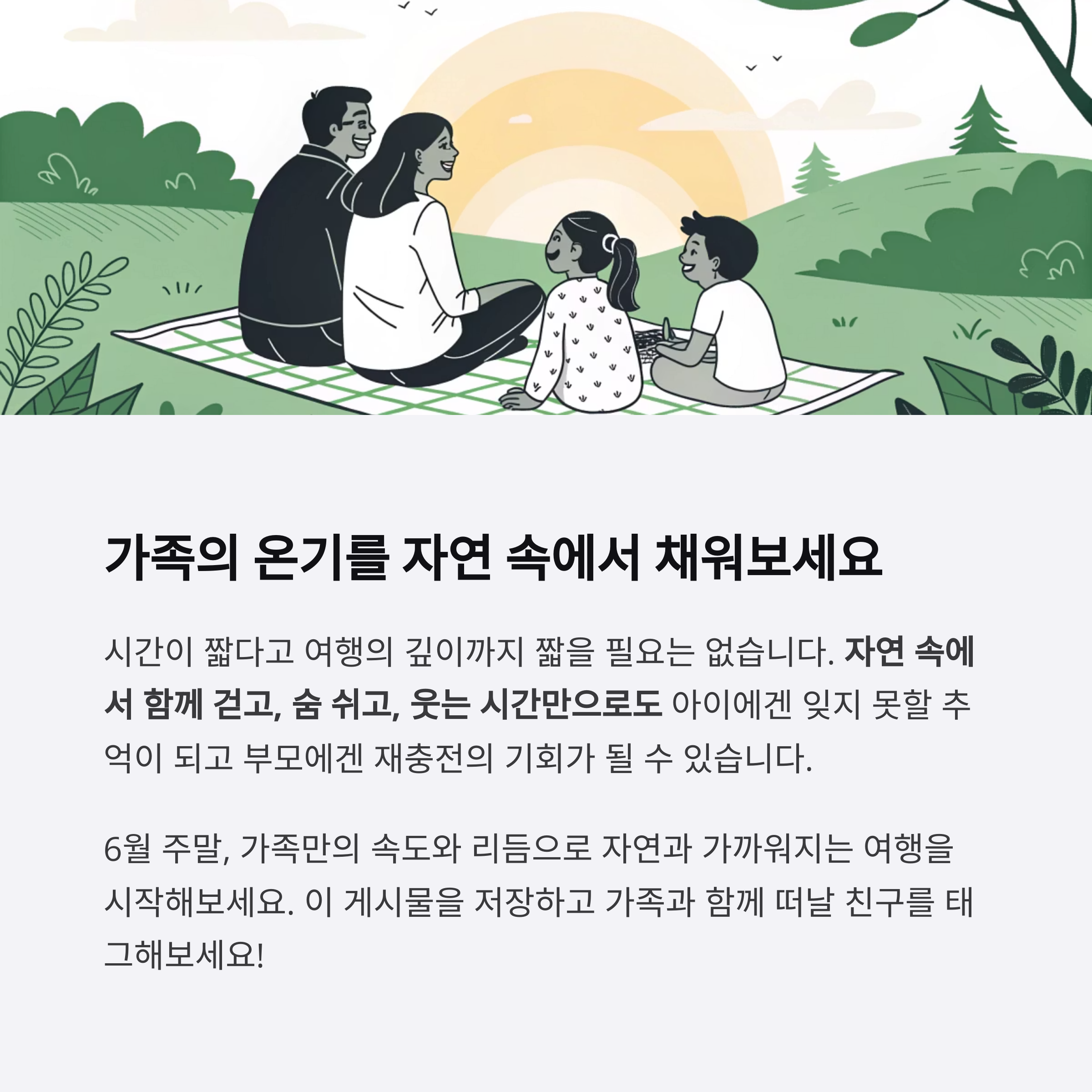 6월 주말, 가족만의 속도와 리듬으로 자연과 가까워지는 여행을 시작해보세요