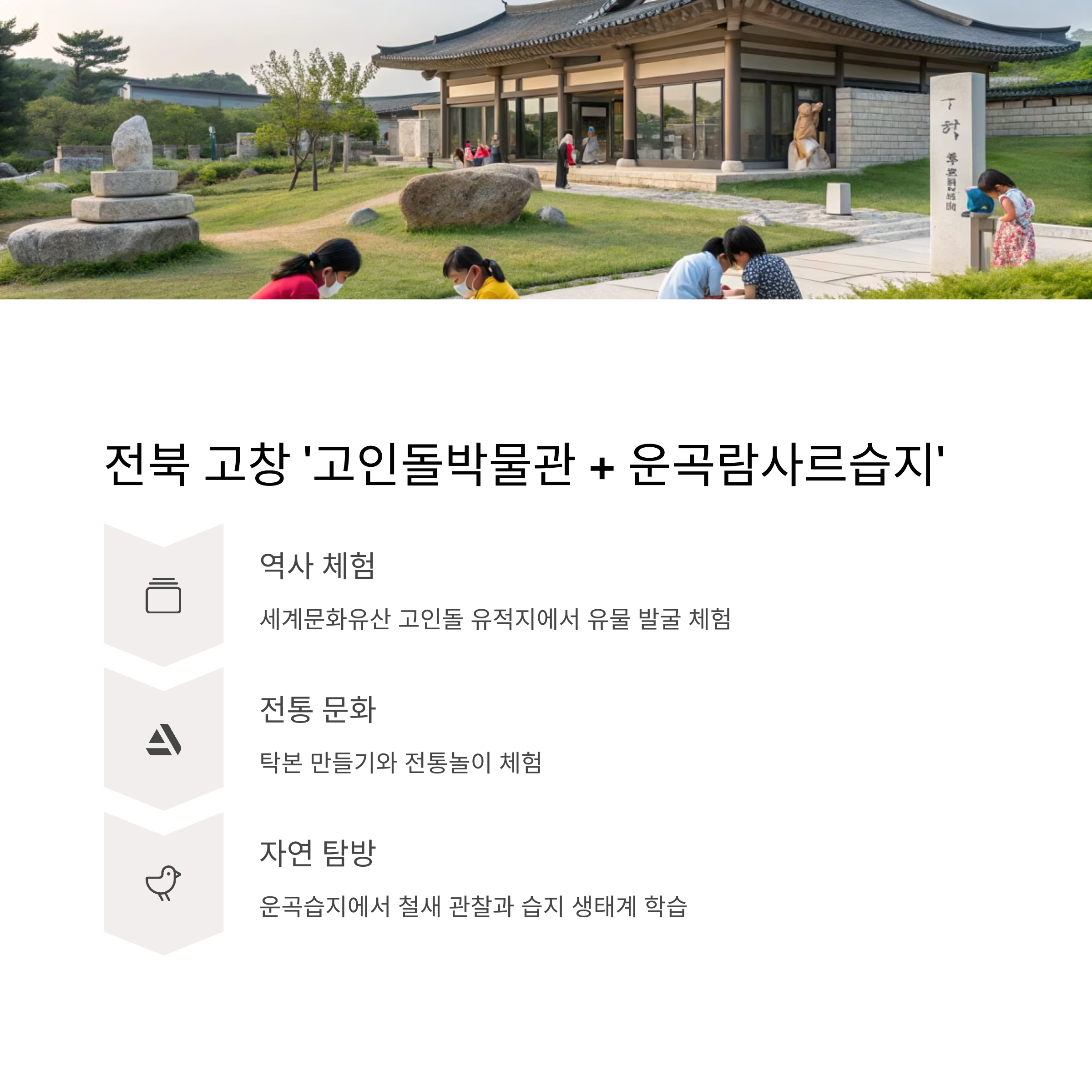| 고창 | 박물관 | 유물 체험 | 역사+자연 결합 |