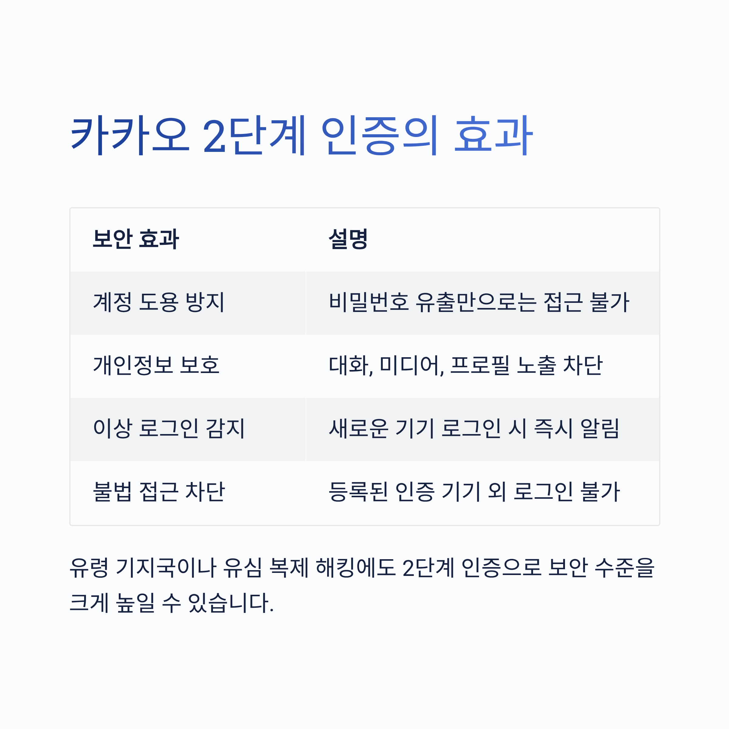 | 카카오톡 보안 강화 | 2단계 인증으로 계정 보호 |