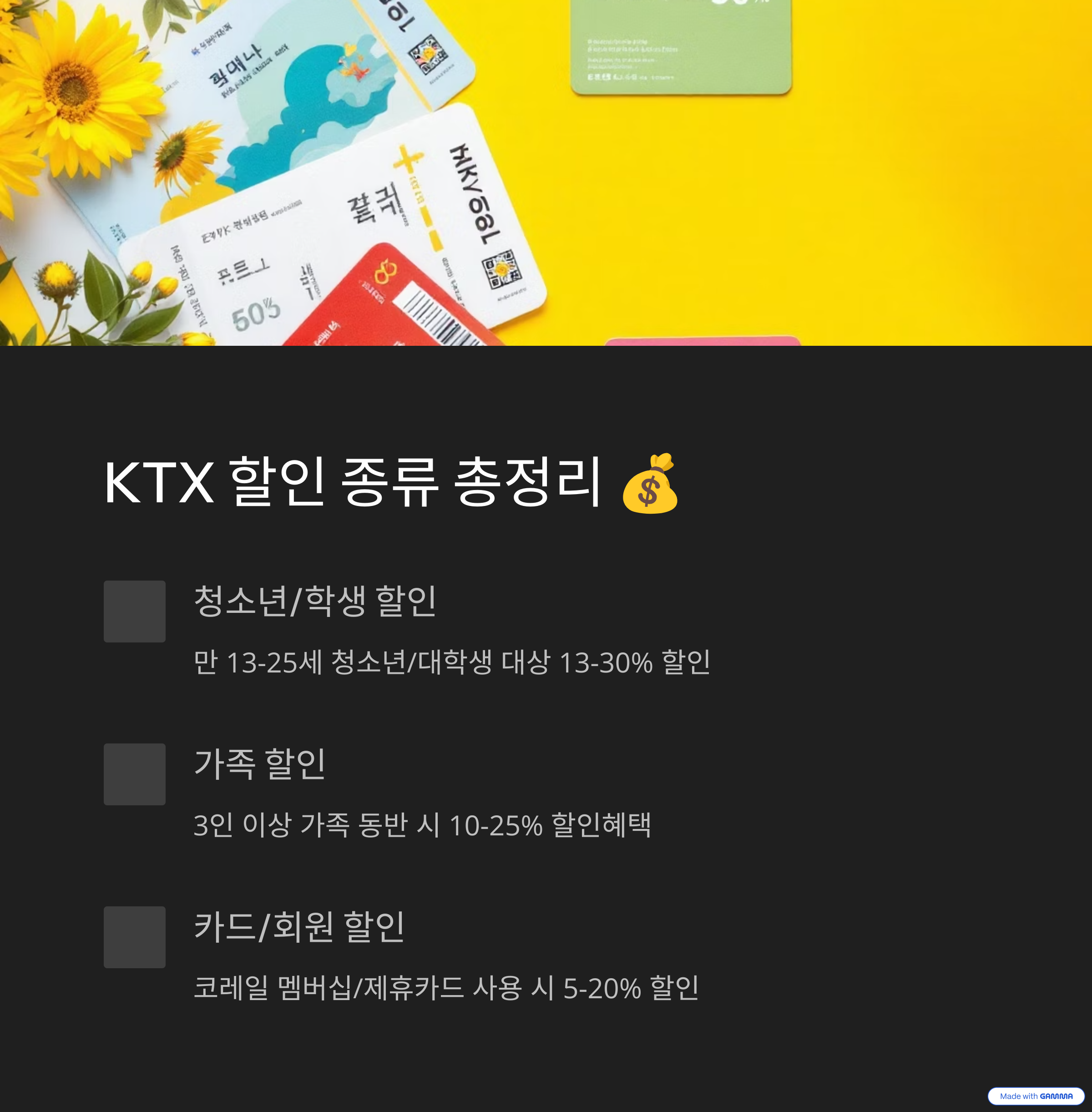 KTX 할인 종류 총정리 - 코레일의 다양한 할인 혜택 한눈에 보기