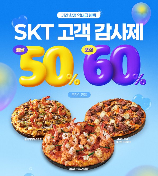 SKT 고객이라면 T 멤버십 앱에서 할인쿠폰을 다운로드하고 도미노피자 앱 또는 홈페이지에서 주문하면 됩니다.