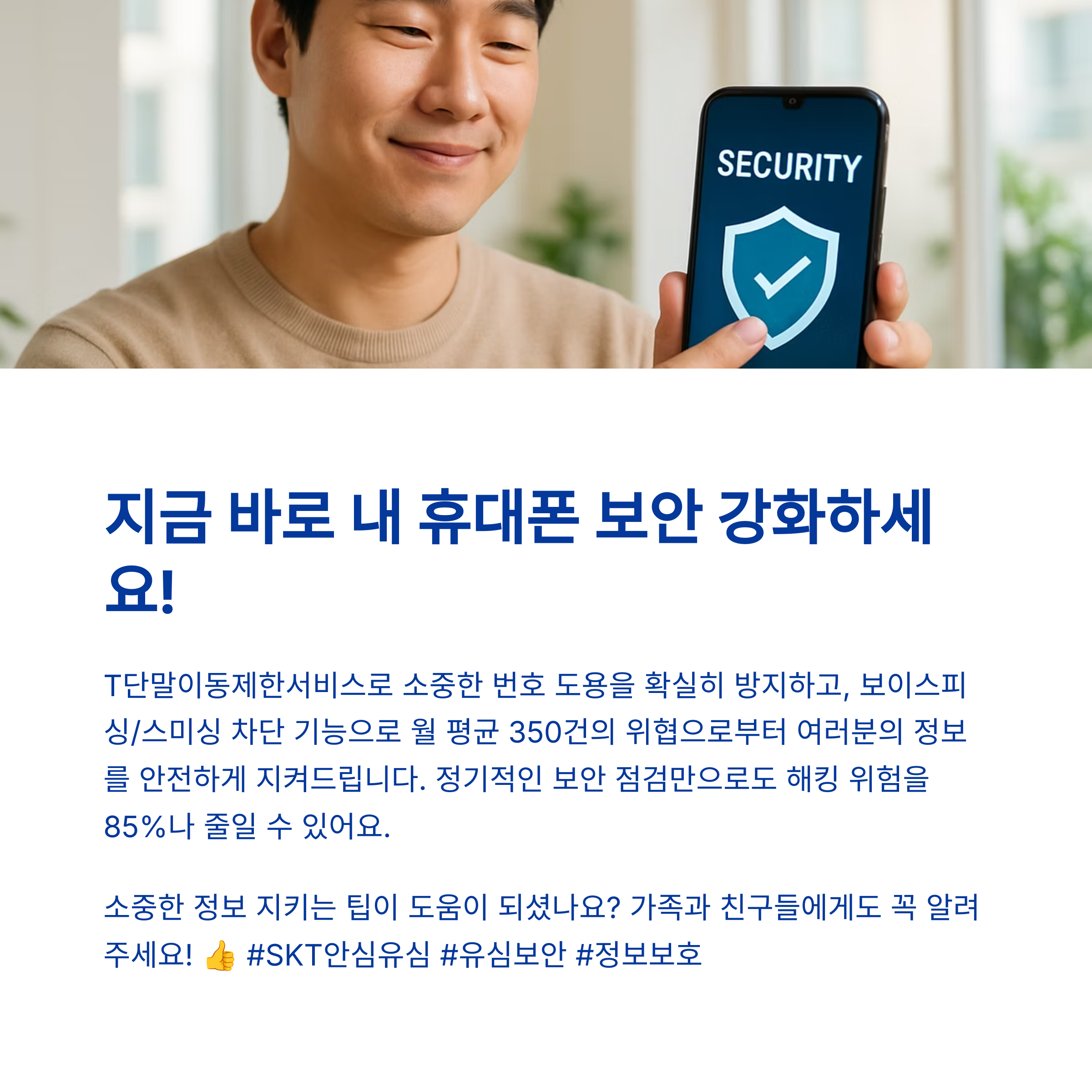 SKT 유심을 교체했다면, 이제부터는 해킹 위험을 확실히 막아야 할 때입니다. 간단한 설정 몇 가지만 완료해도 개인정보를 훨씬 더 안전하게 보호할 수 있는데요. 지금 바로 따라 하셔서 소중한 정보를 지키세요!