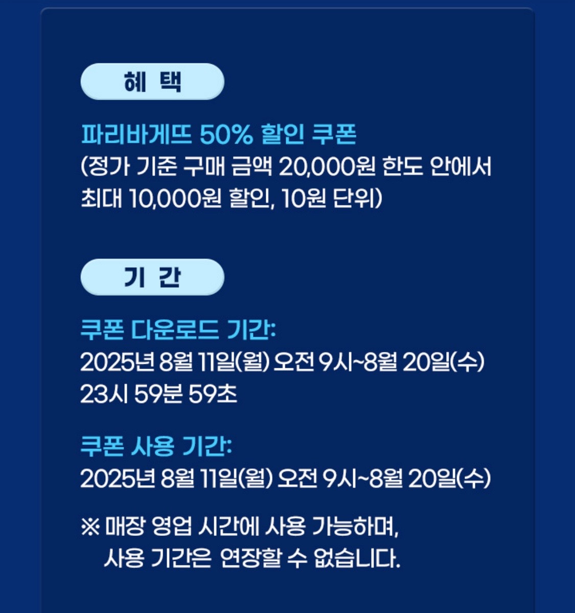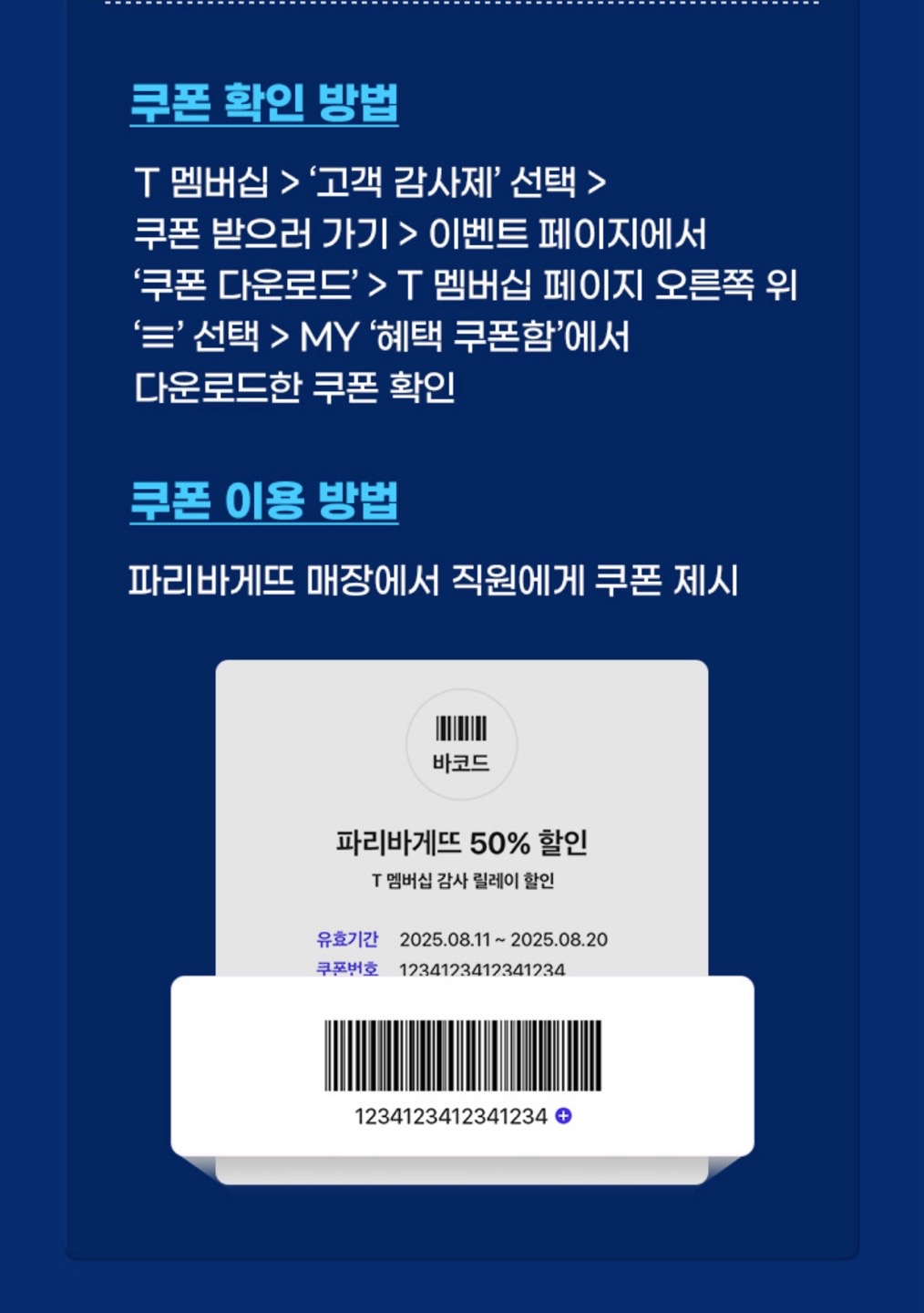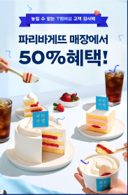 | 2단계 | ‘파리바게뜨 50% 할인’ 쿠폰 다운로드 |