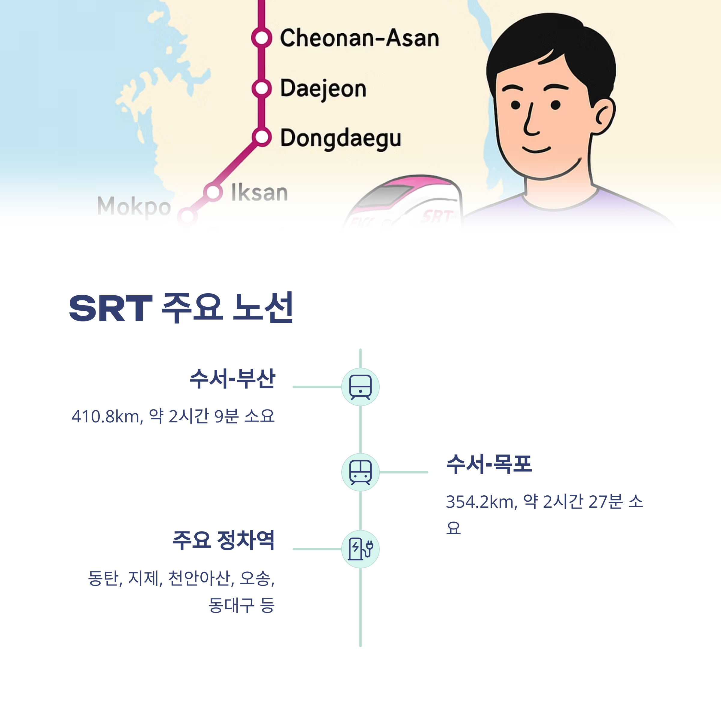수도권에서 남부 지방까지 빠르게 연결되기 때문에 출장이든 여행이든 최적의 선택입니다.