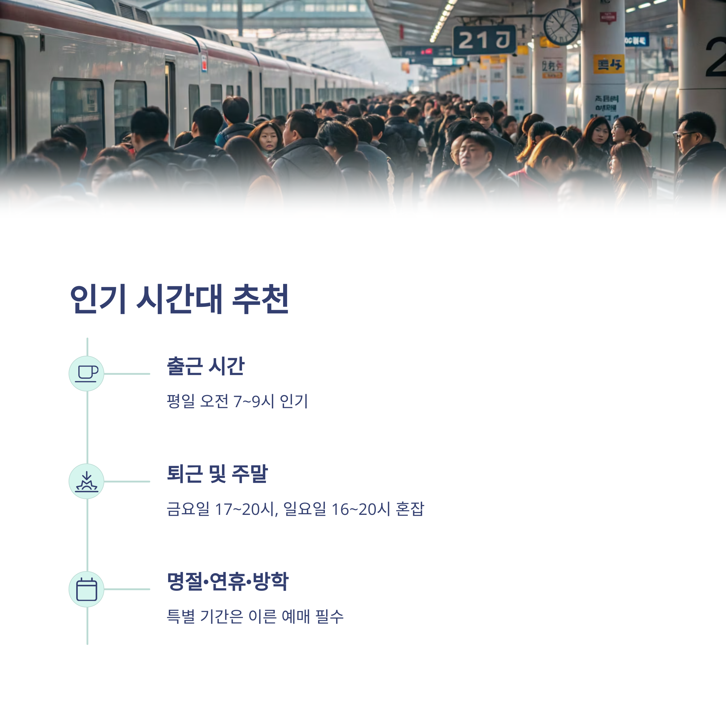 특히 명절이나 휴가철에는 특별편성 열차가 추가되기도 하니 미리 확인하는 것이 좋습니다.