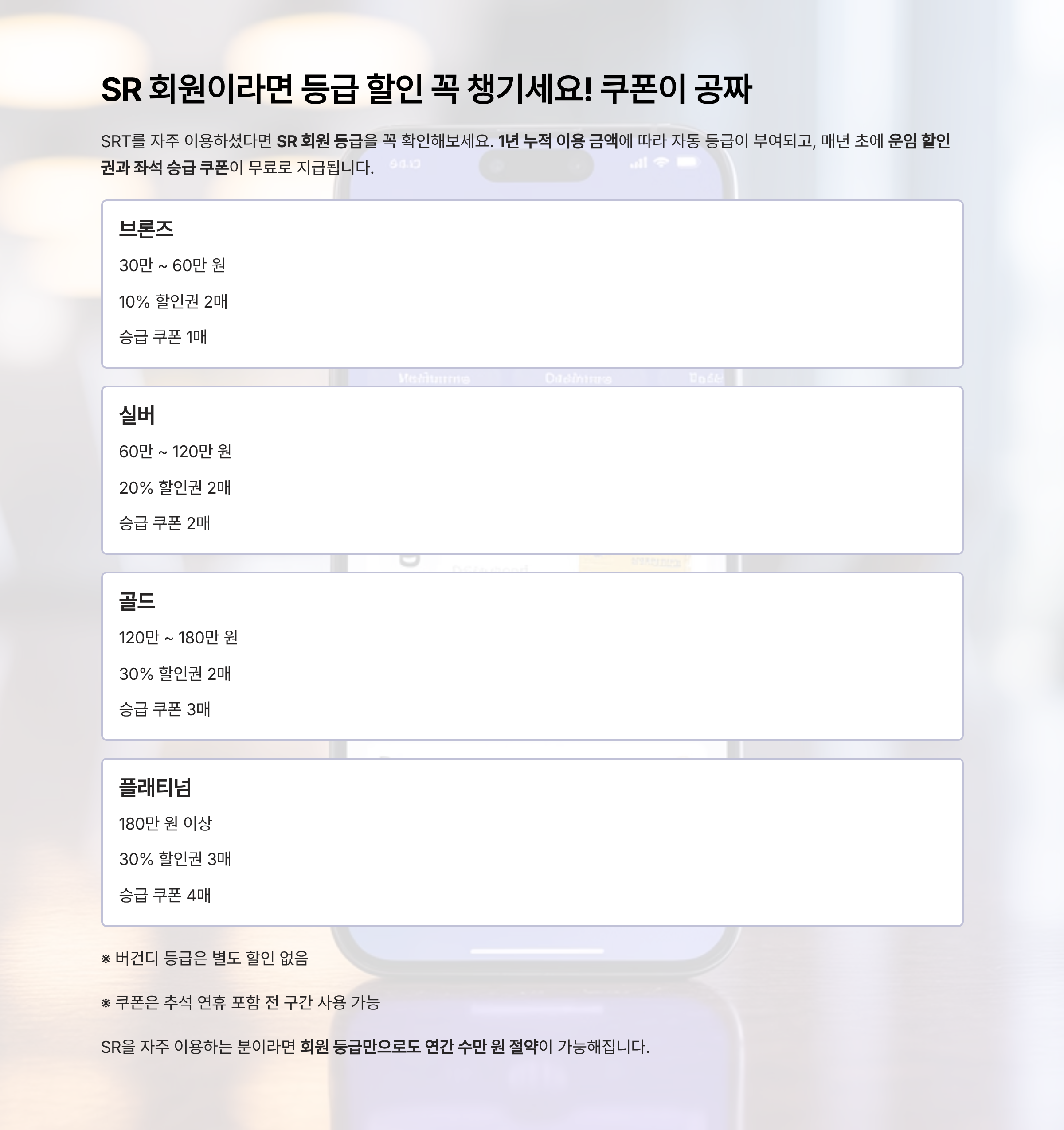 SR 회원이라면 등급 할인 꼭 챙기세요! 쿠폰이 공짜